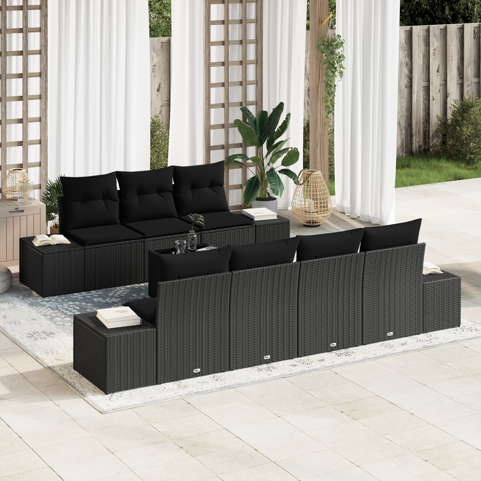Tato sada zahradních pohovek z poly ratanu přináší elegantní a funkční prvek do jakéhokoli venkovního prostoru se svým moderním designem. Vyrobena z odolných materiálů, nabízí dostatek místa pro relaxaci a zábavu. Její jednoduché linie a křivky jí dodávají krásný vzhled, ideální pro zahrady nebo terasy, a vhodná je jak pro společenské setkání, tak pro chvíle klidu. Moderní a současný design posune estetiku vaší zahrady na jinou úroveň.