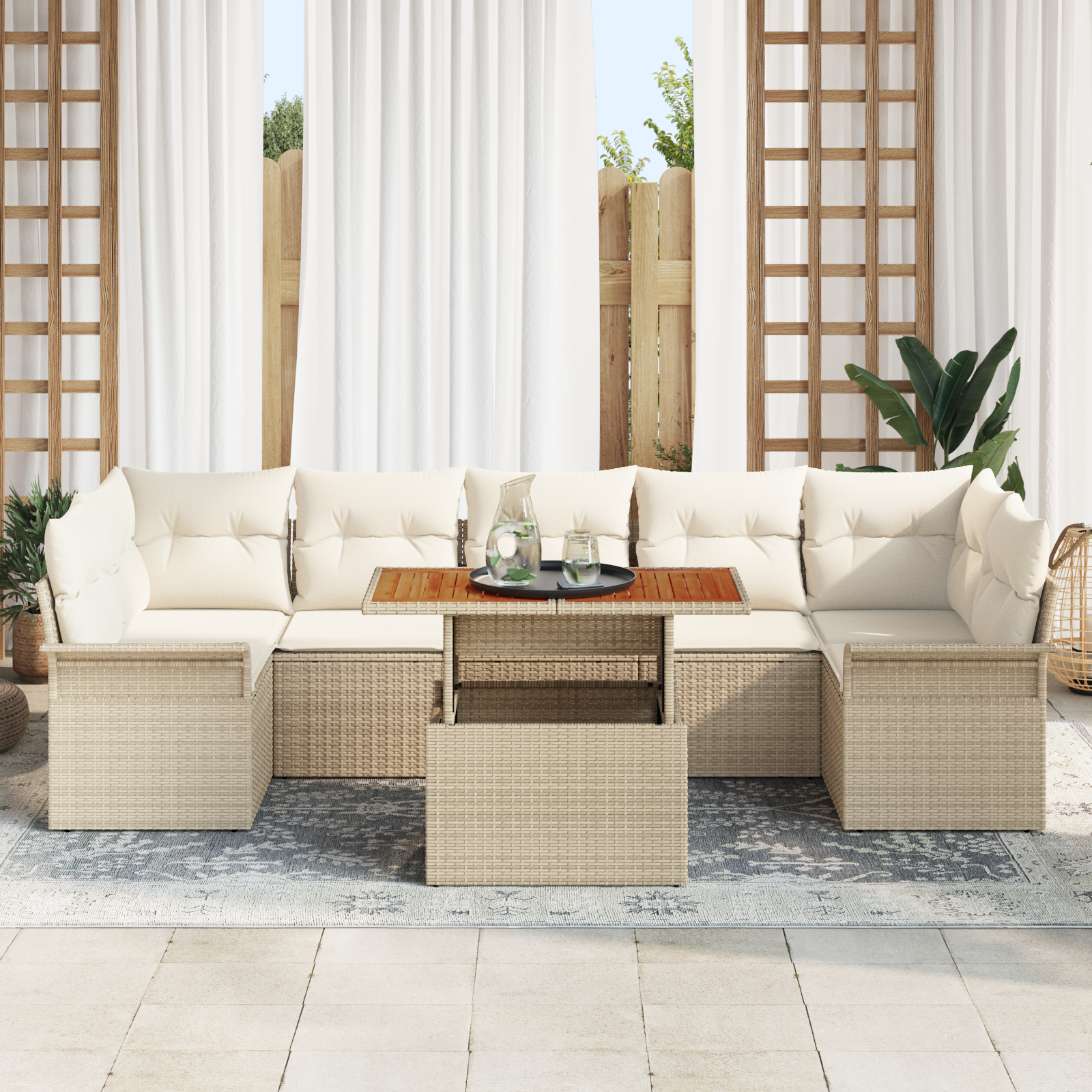 Tato elegantní sada zahradního sofa s polštáři je ideální pro proměnu jakéhokoli venkovního prostoru na současnou oázu relaxace. Navrženo pro ty, kteří oceňují jak formu, tak funkci, tato sada přináší dotek sofistikovanosti na terasy, zahrady a jiné venkovní oblasti. Tkaný polyratan v kombinaci s pevným akáciovým dřevem nabízí příjemnou estetiku, která doplňuje zahradní prostředí, poskytující pohodlné místo pro odpočinek nebo zábavu hostů. Ať už si užíváte tichá odpoledne nebo živé shromáždění, tato sada sofa se bez námahy přizpůsobí různým venkovním scénářům a zve uživatele, aby si užili pohodlí a styl.