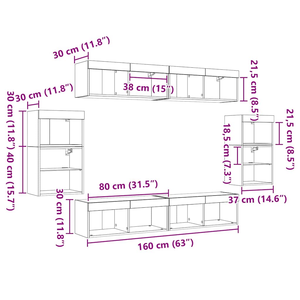 Sestava TV skříněk Nástěnný 8 pcs dub artisan Kompozitní dřevo