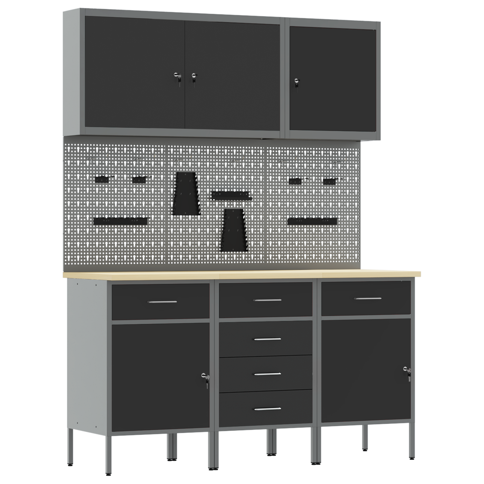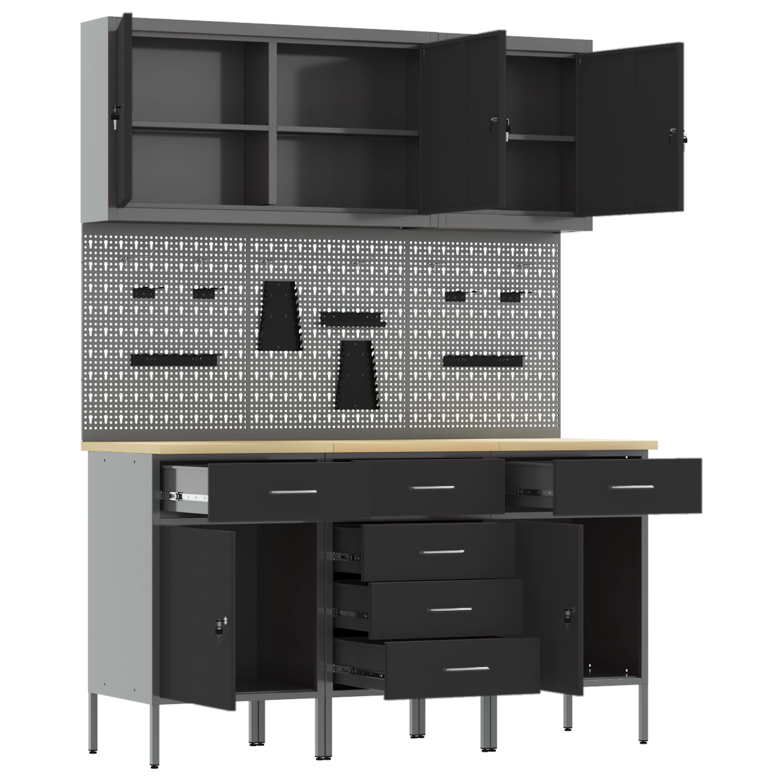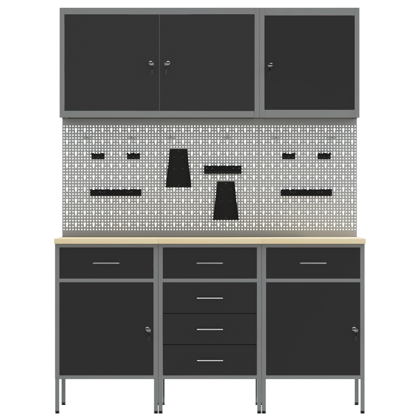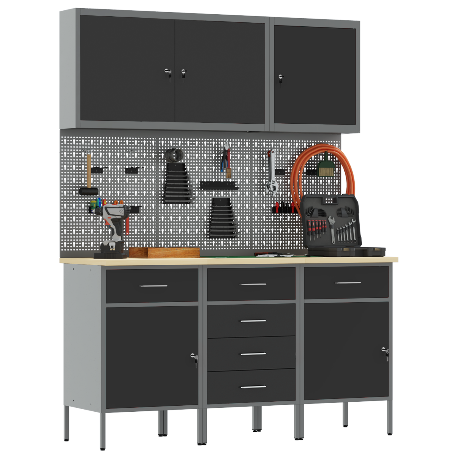 • Víceúčelové úložiště: Skříň má spoustu oddělení, šuplíků a polic, což nabízí skvělá organizační řešení. Efektivně uspořádá nástroje a materiály, což vám usnadní práci a zajistí, že všechno bude na místě. Jejím chytrým designem vyhovíte různým potřebám, od velkých nástrojů po malá příslušenství, takže je nepostradatelná pro uspořádané pracovní prostory.