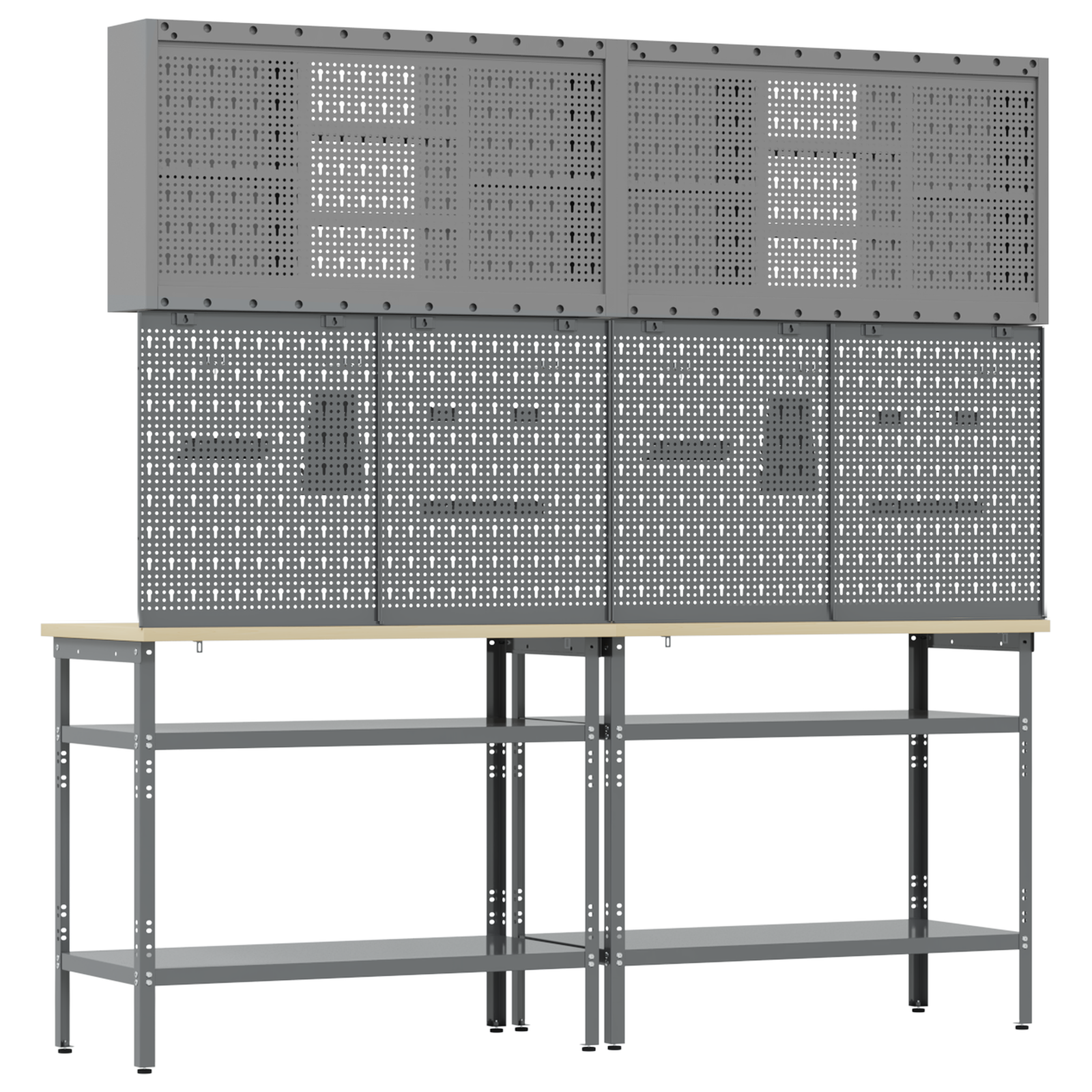 Tato sada pracovních stolů z oceli je ideální kombinací funkčnosti a průmyslového stylu pro profesionální dílny i domácí garáže. Obdélníkový stůl zvládne i těžší úkoly a má moderní design. Díky hladkému povrchu se bezproblémově hodí do jakéhokoliv prostoru. Kovové police poskytují dost úložného místa, takže máte nářadí a potřeby pěkně srovnané a přehledné. Představte si tento stůl jako středobod vašeho pracovního místa, který dodává atmosféru profesionality, pořádku a stylu.
