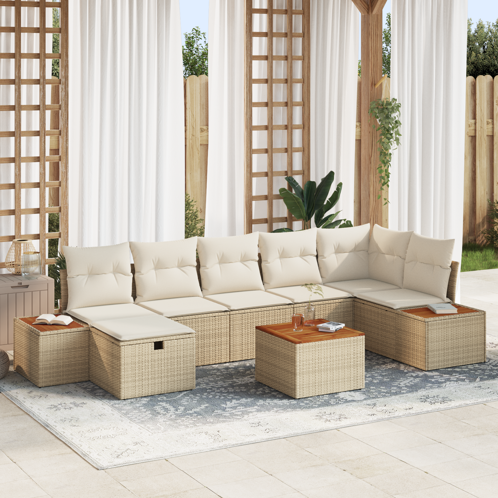 Tahle modulární zahradní sedačka je stvořená pro pohodlné venkovní lenošení. Spojuje styl s praktičností a dodává šmrnc každé terase, zahradě nebo venkovnímu prostoru. Moderní vzhled kombinuje čisté linie a minimalistické prvky, což vytvoří příjemnou atmosféru. Její modulární styl ti umožní různá uspořádání, ideální pro relaxaci s rodinou nebo pro hostování návštěv.