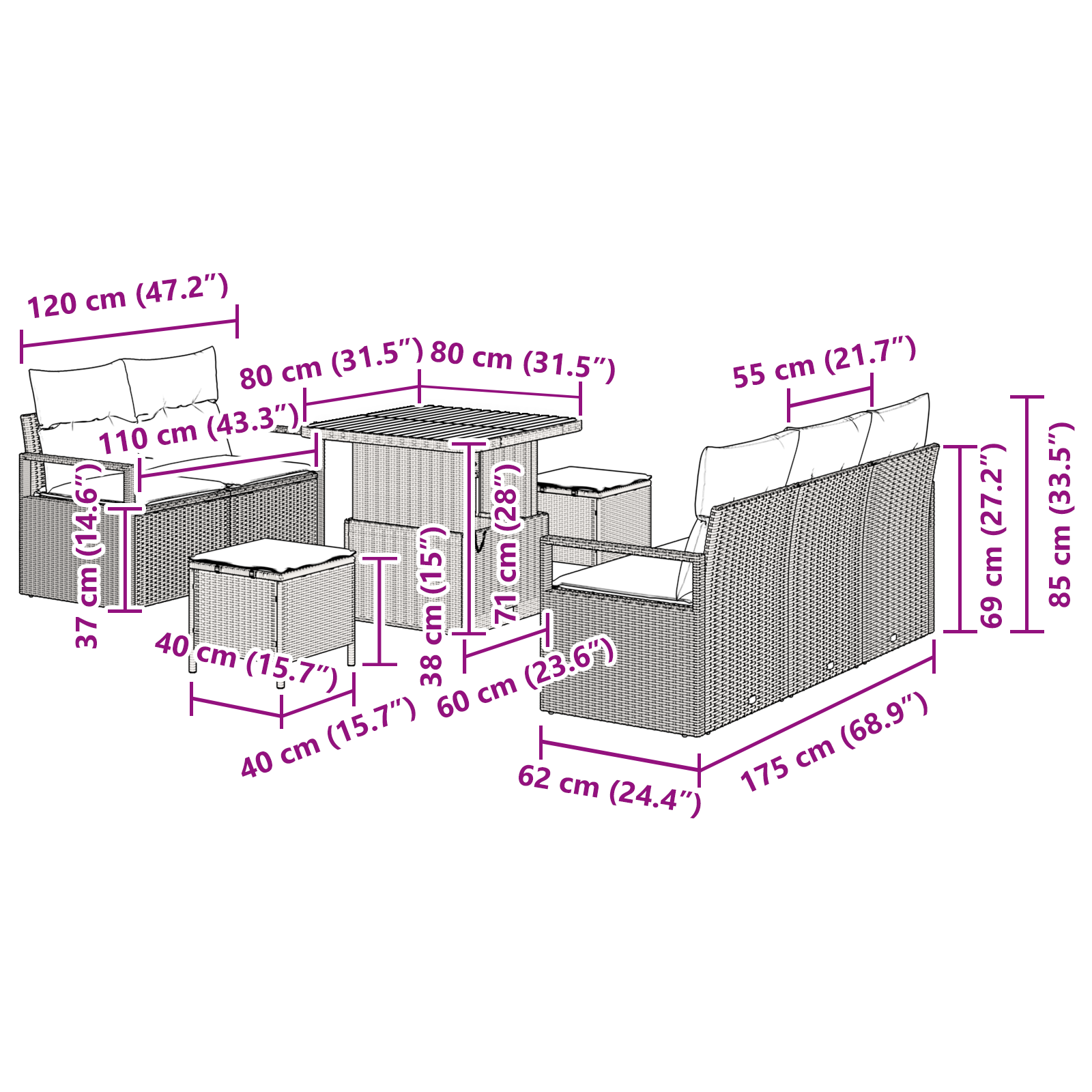 Sada zahradních pohovek s polštářem 8 pcs Černá Poly ratan