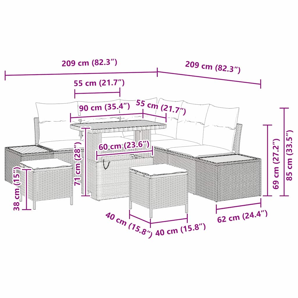 Tato moderní zahradní pohovková sada přináší eleganci a pohodlí do vašich venkovních prostor. S hladkým designem a funkčností je ideální pro hosty nebo poklidné večery. Kombinace odolného poly ratanu a pohodlných pěnových polštářů je perfektní pro váš venkovní odpočinek. Modulární uspořádání umožňuje přizpůsobit set pro jakýkoli dvorek nebo terasu, takže se stane součástí vašich odpočinkových chvil.