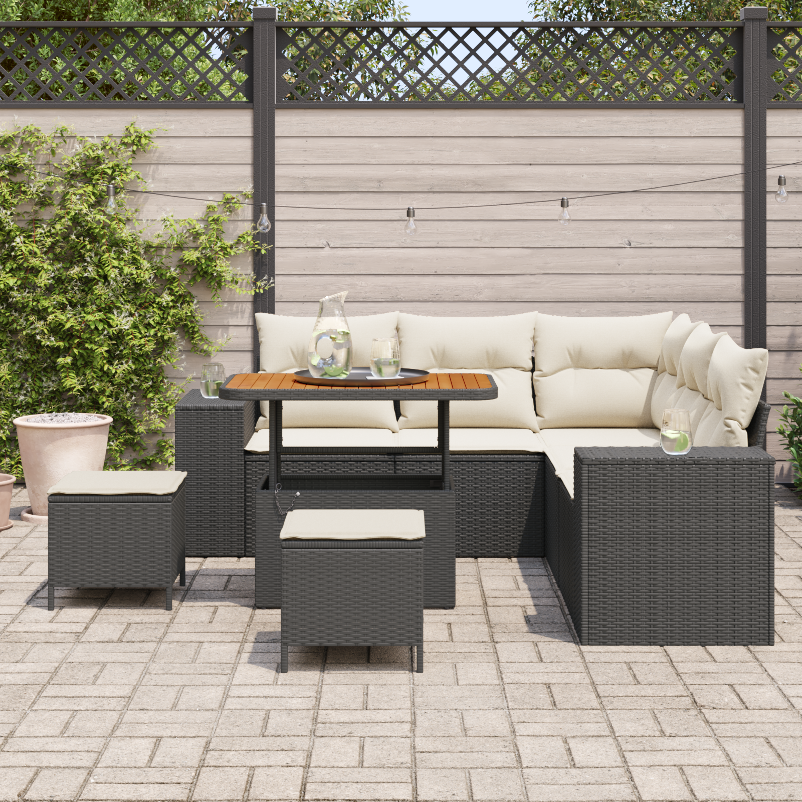 Tahle modulární zahradní pohovková sestava je parádní doplněk pro jakékoli venkovní bydlení, nabízí funkčnost i moderní vzhled s elegantními liniemi a šarmem. Je ideální pro zahrady a terasy, poskytuje skvělé místo na lenošení. Díky své modulární konstrukci si ji můžeš přizpůsobit přesně podle potřeby, ať už chceš mít otevřenou plochu na sezení nebo klidný kout na odpočinek. Pohledný akáciový dřevo skvěle ladí s jeho poly ratanovým rámem, takže získáš stylový kousek.