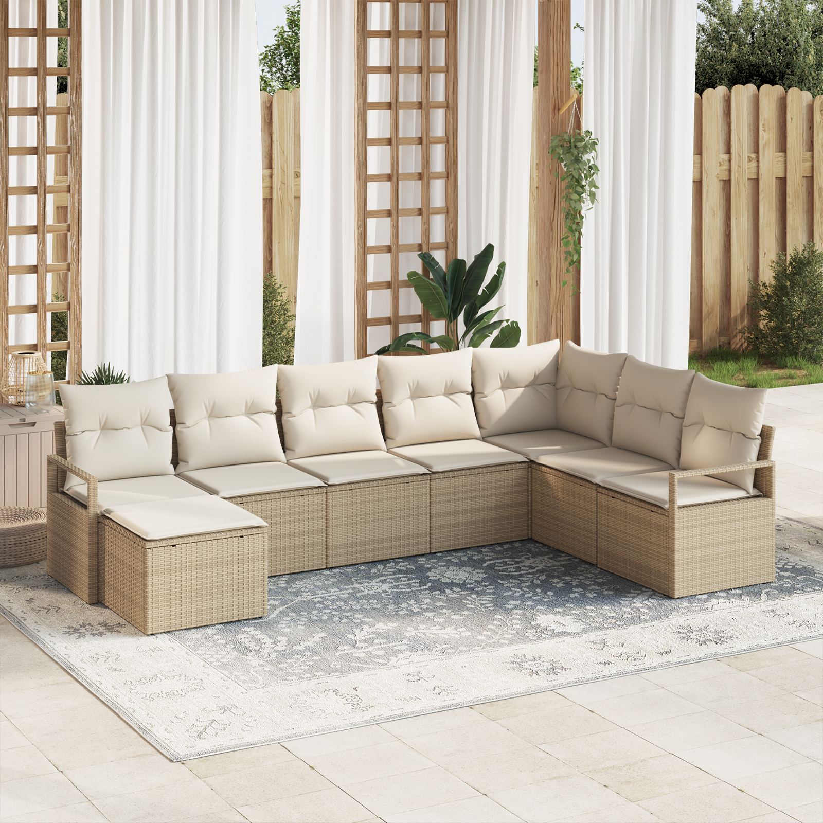 Tento zahradní pohovkový set přináší moderní eleganci s jednoduchým designem, ideálním pro venkovní použití. Je obdélníkový a vyrobený z tkaného poly ratanu a odolného ocelového rámu, takže vypadá skvěle a je funkční. Nabízí pohodlný prostor na relaxaci nebo hostování, takže si užijete venkovní zábavu díky modulu, který se dá různě kombinovat.