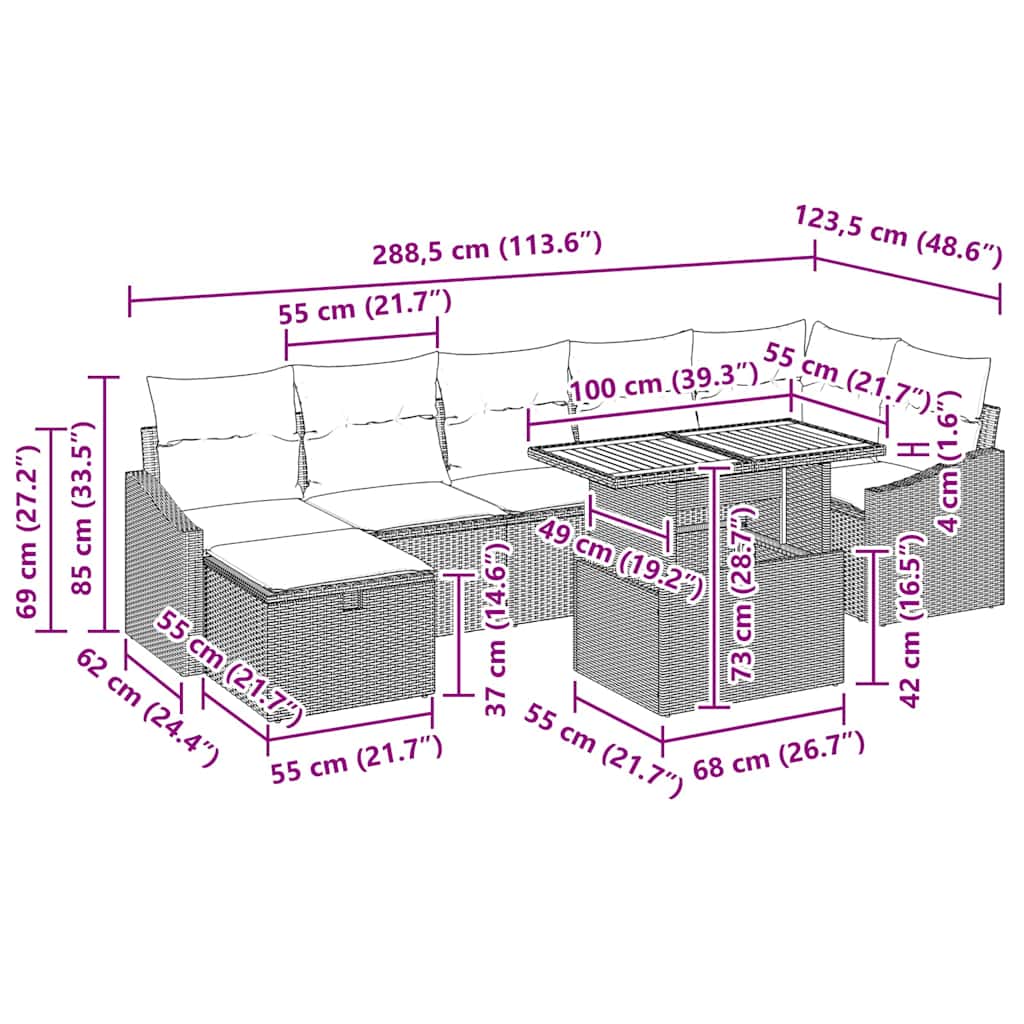 Sada zahradních pohovek s polštářem 8 pcs Béžová polyratan
