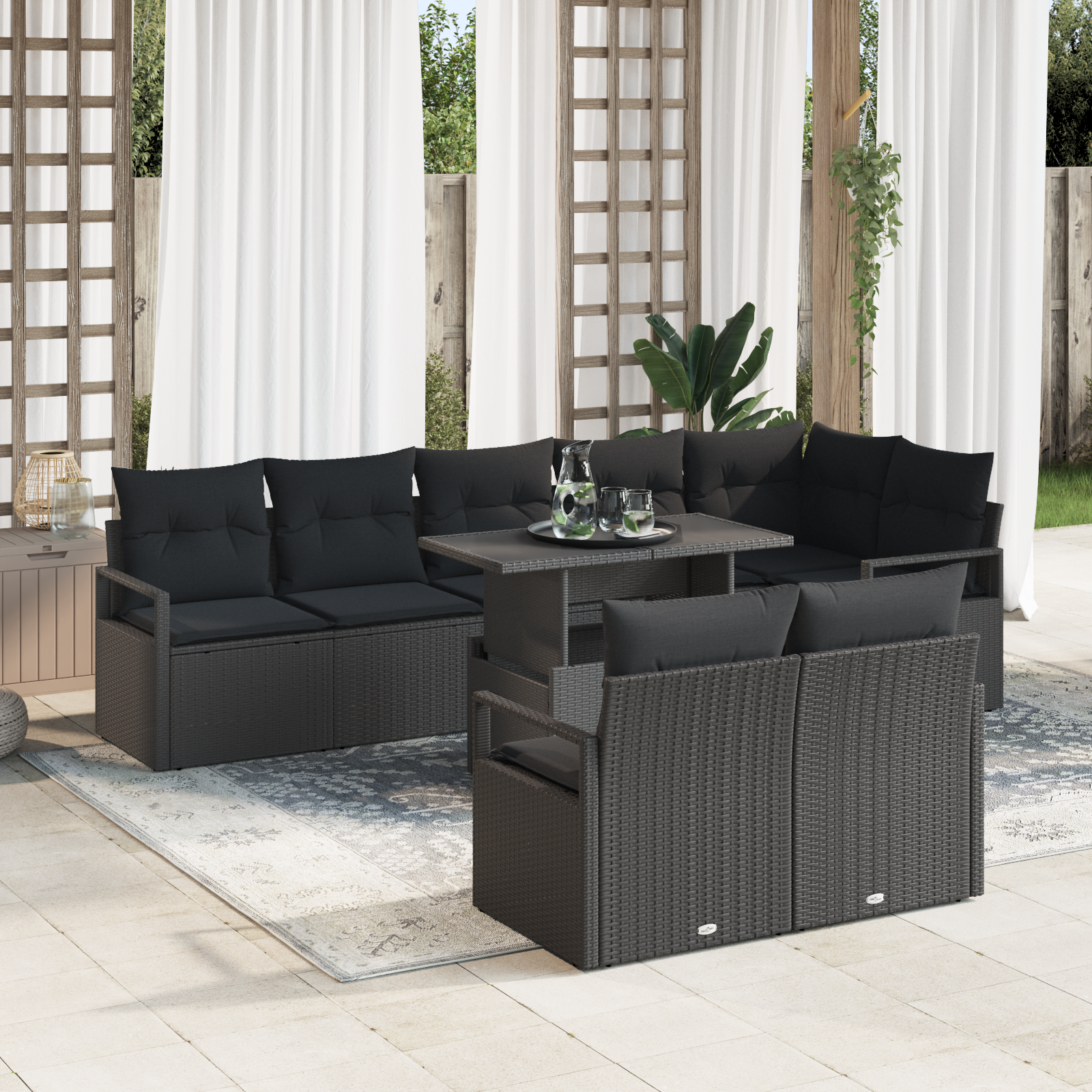 Sada zahradních pohovek s polštářem 9 pcs Černá polyratan