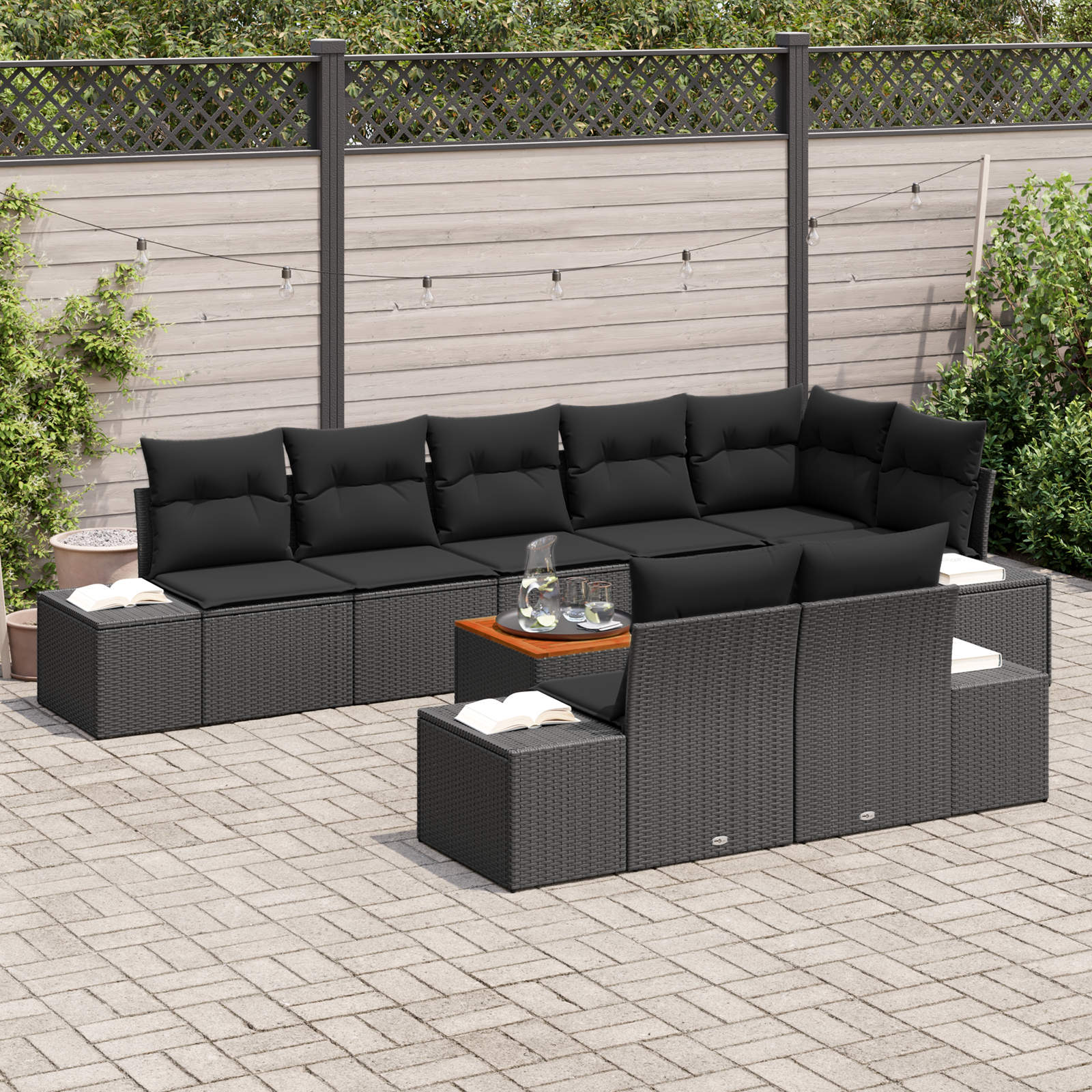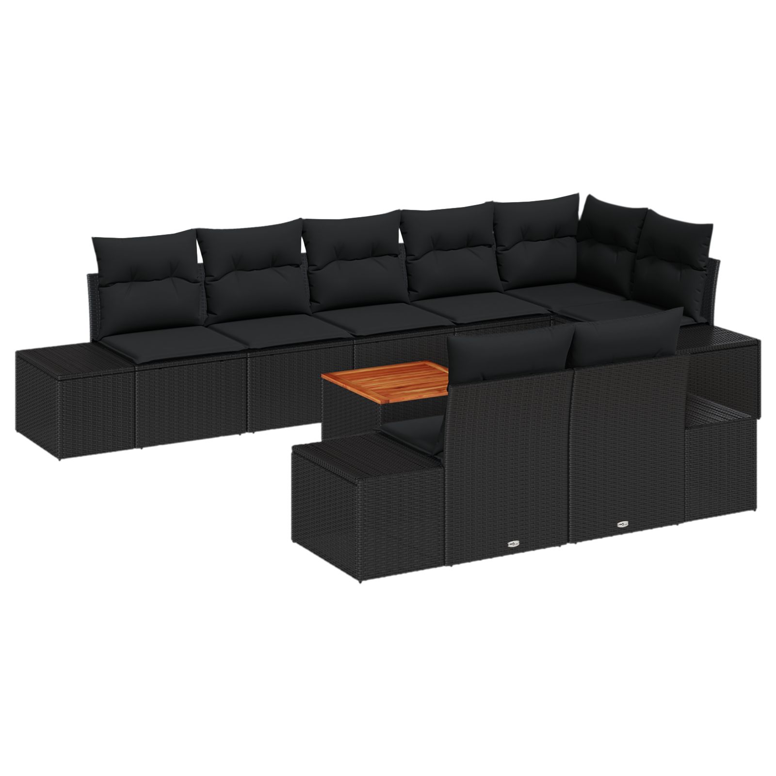 Sada zahradních pohovek s polštářem 9 pcs Černá Poly ratan