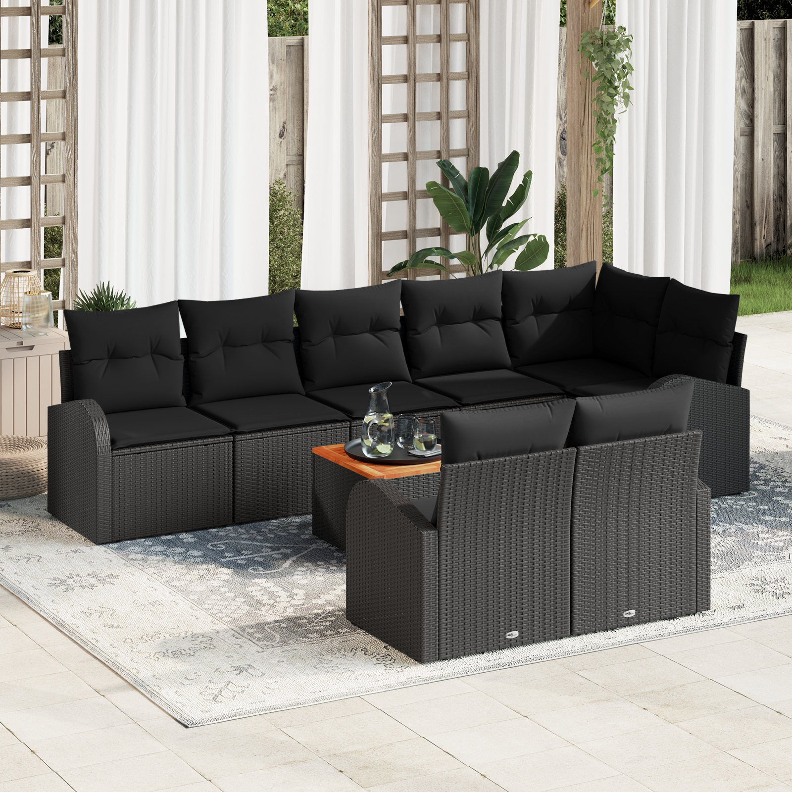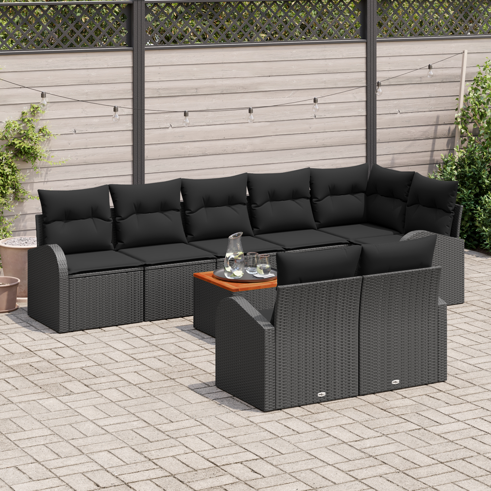 Sada zahradních pohovek s polštářem 9 pcs Černá polyratan
