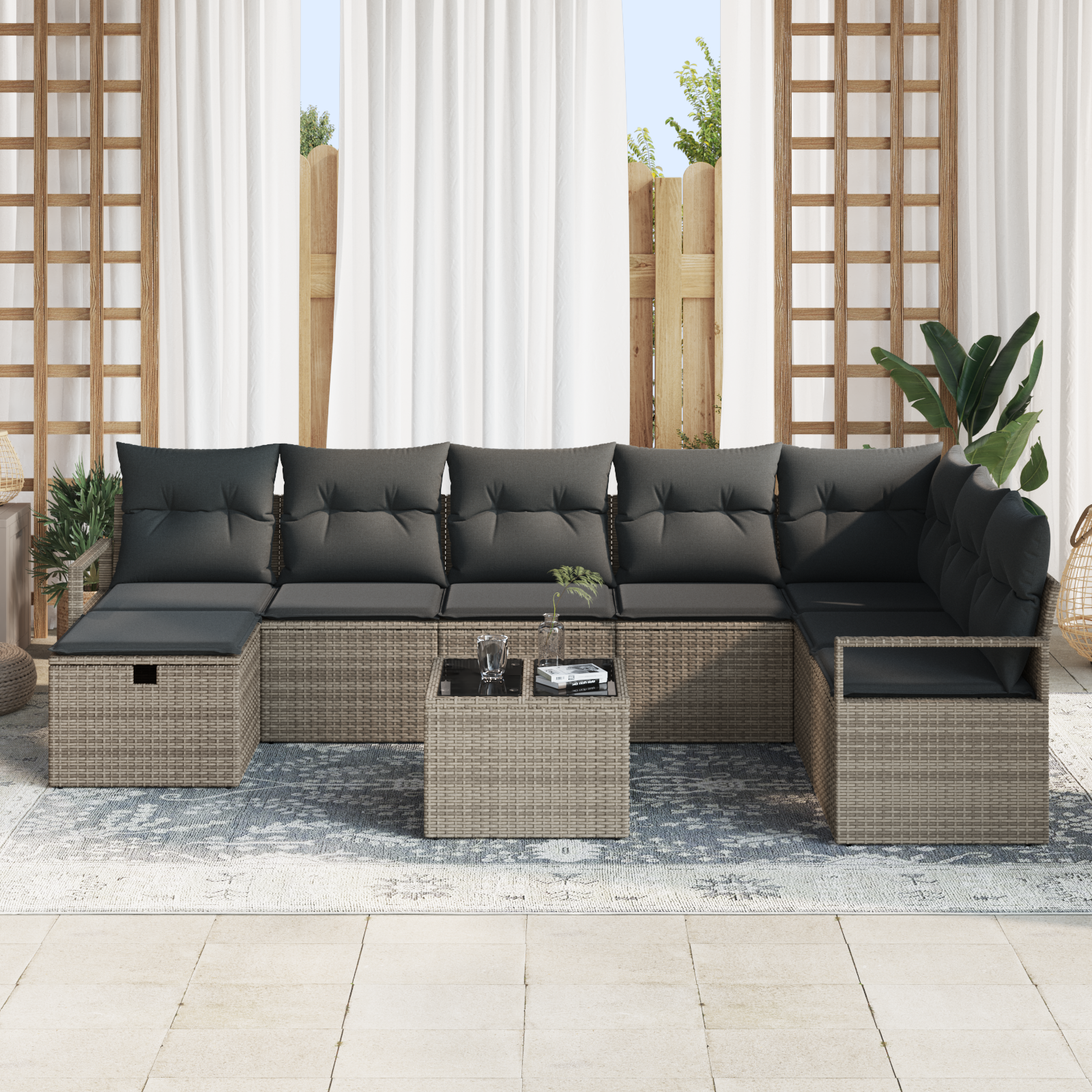 Set pohovek s polštářem s úložištěm 9 pcs Šedá polyratan