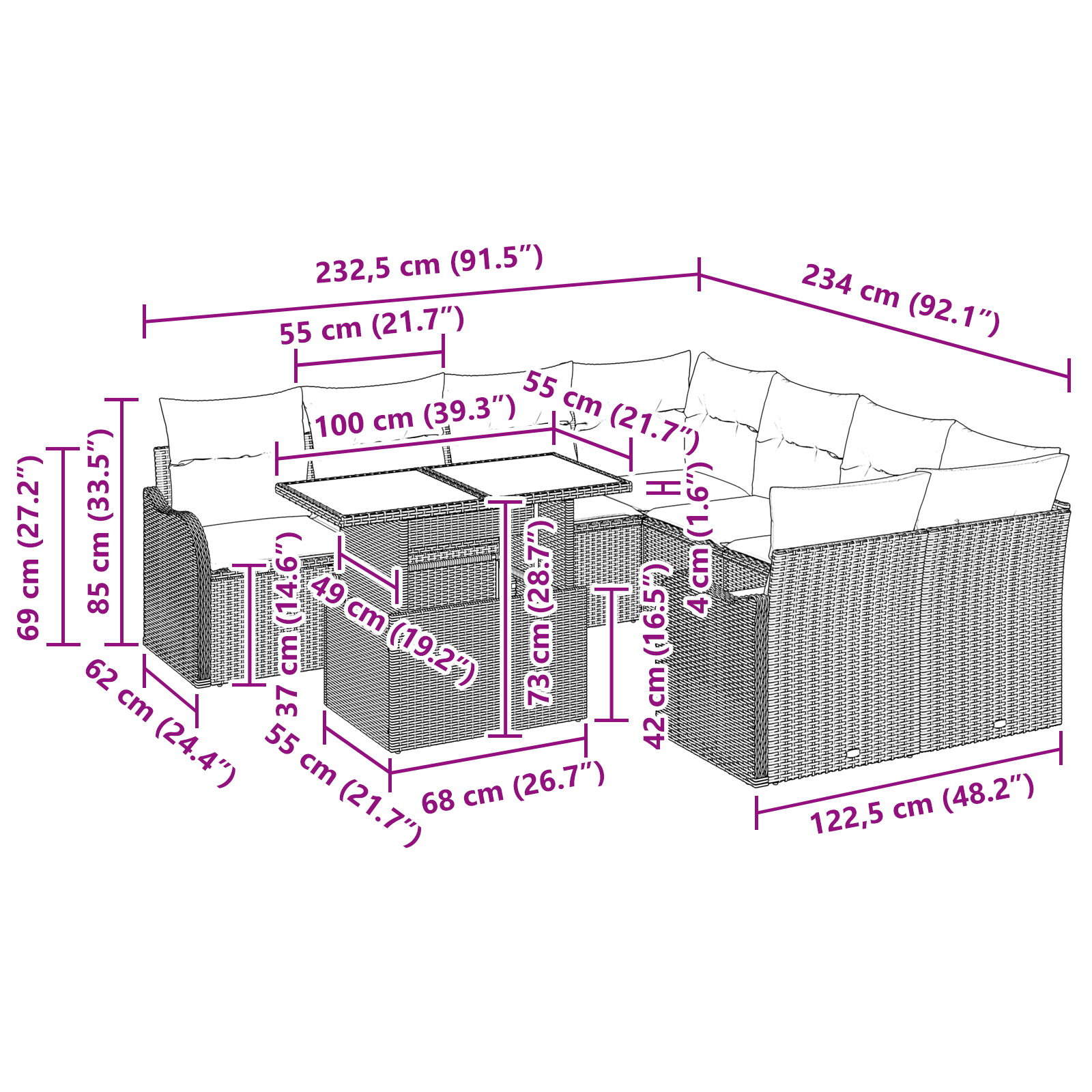 Modulární ratanová jídelní souprava pro 9 osob je skvělý doplněk do jakékoli zahrady nebo terasy. S moderním designem a čistými liniemi nabízí nádherný venkovní prostor pro setkání. Souprava je praktická i estetická a promění vaši zahradu na letní útočiště. Každý kus je navržen tak, aby byl stylový a funkční, ideální pro rodiny nebo skupiny, které si chtějí užít venkovní stolování a relaxaci.