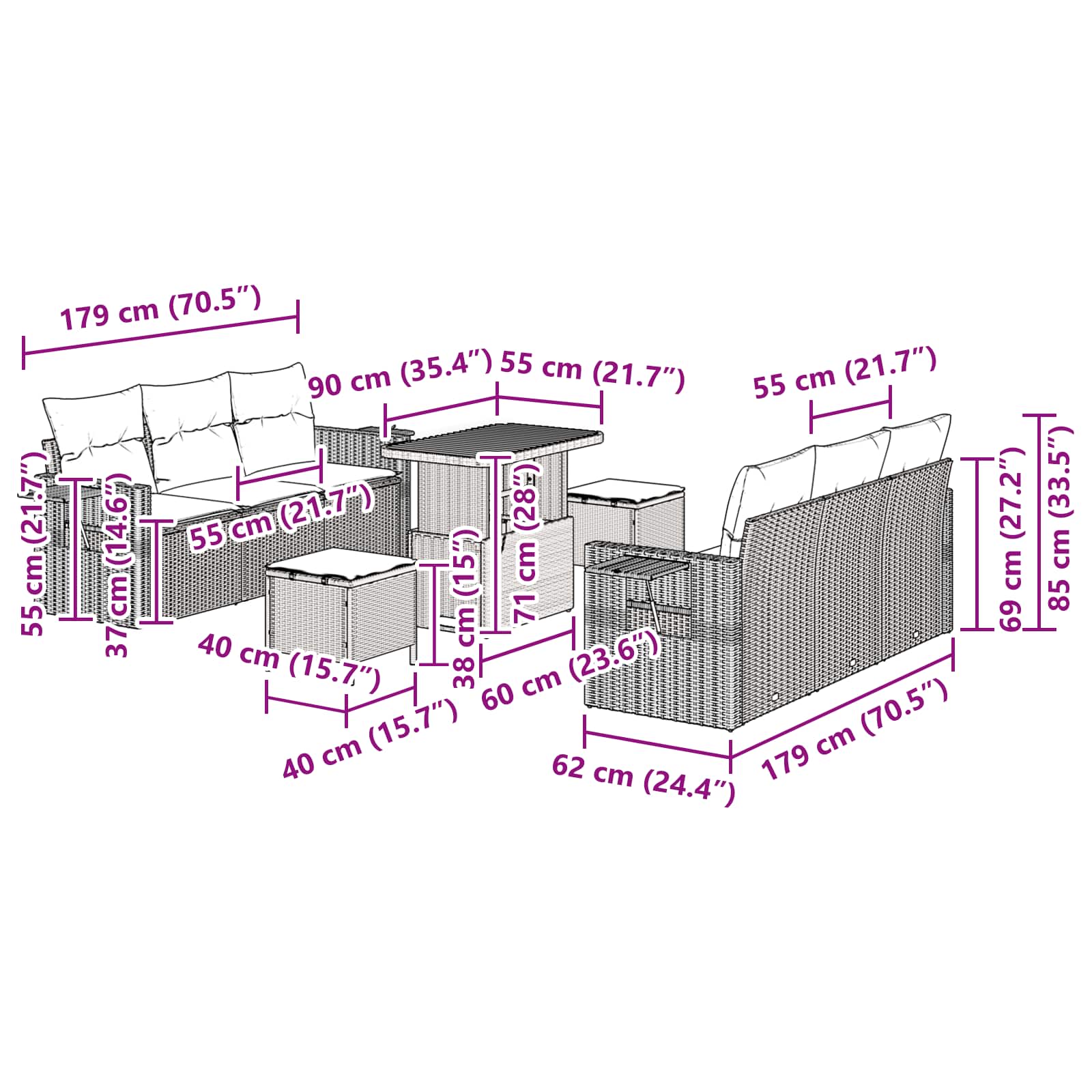 Tento modulární zahradní gauč spojuje moderní design s funkcí, ideální pro váš venkovní zážitek. Díky elegantnímu zpracování se přemění v krásnou oázu vaší zahrady nebo terasy. Jeho jasné linie a minimalistický styl jsou skvélé pro ty, kteří chtějí bavit nebo si užít chvíle odpočinku venku.