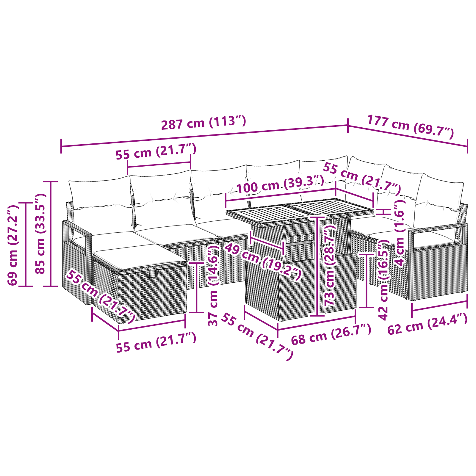 Tahle moderní zahradní sedačka je fakt důkazem skvělého současného designu, nabízí jednoduchý styl a úžasnou funkčnost do každého venkovního prostoru. Šikovně spojuje styl s pohodlím, má čisté linie a minimalistickou estetiku, co oceníte, pokud preferujete jednoduchý vzhled bez obětí na praktičnosti. Ať už chystáte venkovní akci, nebo si chcete užít klidnou chvilku, tahle sada udělá z vaší zahrady nebo terasy sofistikované útočiště, připravené uspokojit všechny vaše potřeby.