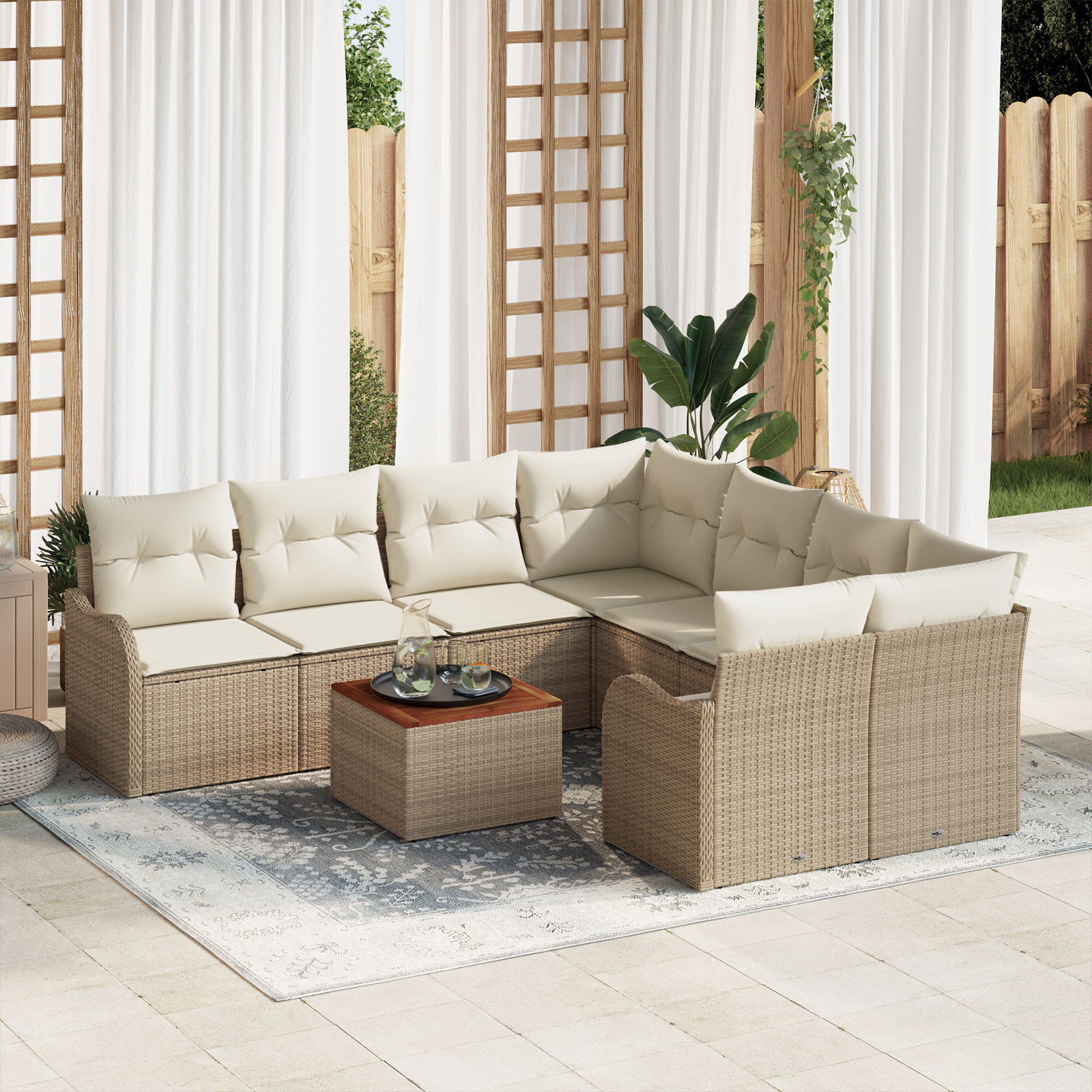 Sada zahradních pohovek s polštářem 9 pcs Béžová polyratan