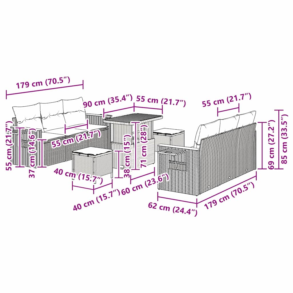 Tento zahradní gaučový set je skvělým spojením jednoduchosti a funkčnosti, a představuje moderní styl. Tkaná textura a poly ratanová konstrukce dělají z tohoto setu ideální volbu pro každou zahradu nebo terasu. Perfektní pro jarní a letní venkovní akce, tento set zve k relaxaci s pohodlnými opěrkami a vyměnitelnými polštáři. Představte si, jak si užíváte sluníčko nebo pořádáte zahradní párty, gauč vytváří příjemnou atmosféru díky svým teplým hnědým tónům.