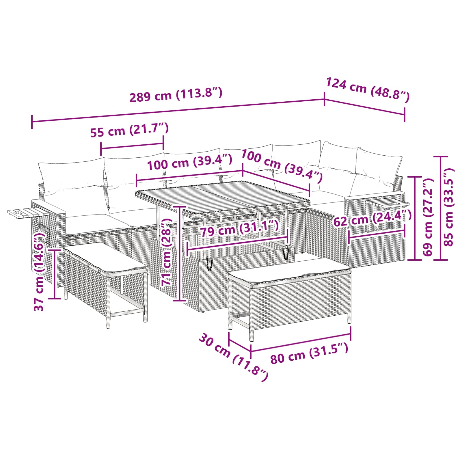 Tato zahradní souprava je skvělým kouskem pro každou venkovní plochu, spojuje moderní styl s pohodlím. Její minimalistické provedení je ideální pro klidné letní večery. Textura tkaniny dodává vizuální šmrnc a vytváří příjemnou atmosféru jak pro setkání s přáteli, tak pro odpočinek. Vyrobená z poly ratanu a práškově lakované oceli, je navržena tak, aby vydržela venku a hodí se do jakéhokoli zahradního nebo terasového prostoru.