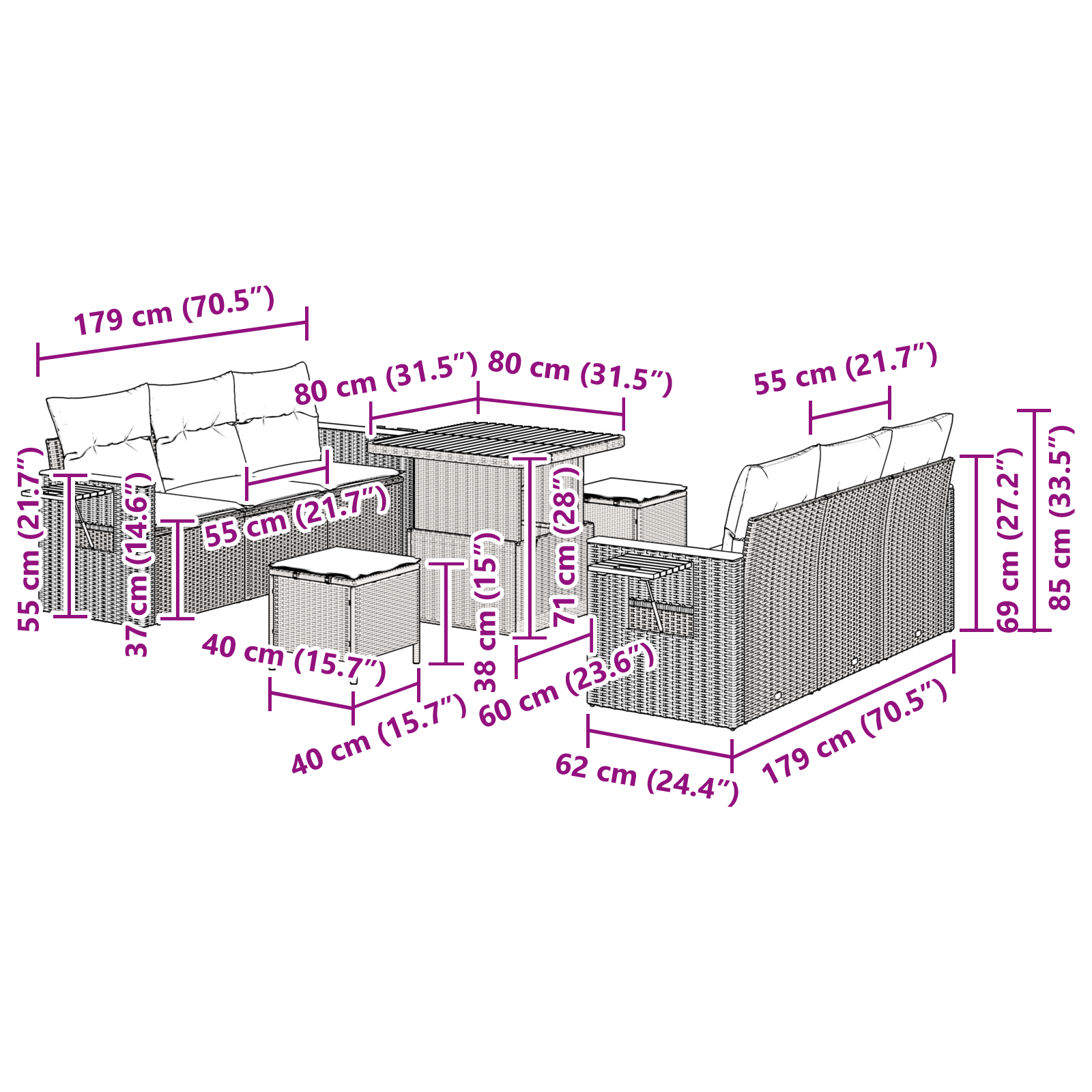 Tento zahradní gaučový set je skvělým spojením jednoduchosti a funkčnosti, a představuje moderní styl. Tkaná textura a poly ratanová konstrukce dělají z tohoto setu ideální volbu pro každou zahradu nebo terasu. Perfektní pro jarní a letní venkovní akce, tento set zve k relaxaci s pohodlnými opěrkami a vyměnitelnými polštáři. Představte si, jak si užíváte sluníčko nebo pořádáte zahradní párty, gauč vytváří příjemnou atmosféru díky svým teplým hnědým tónům.