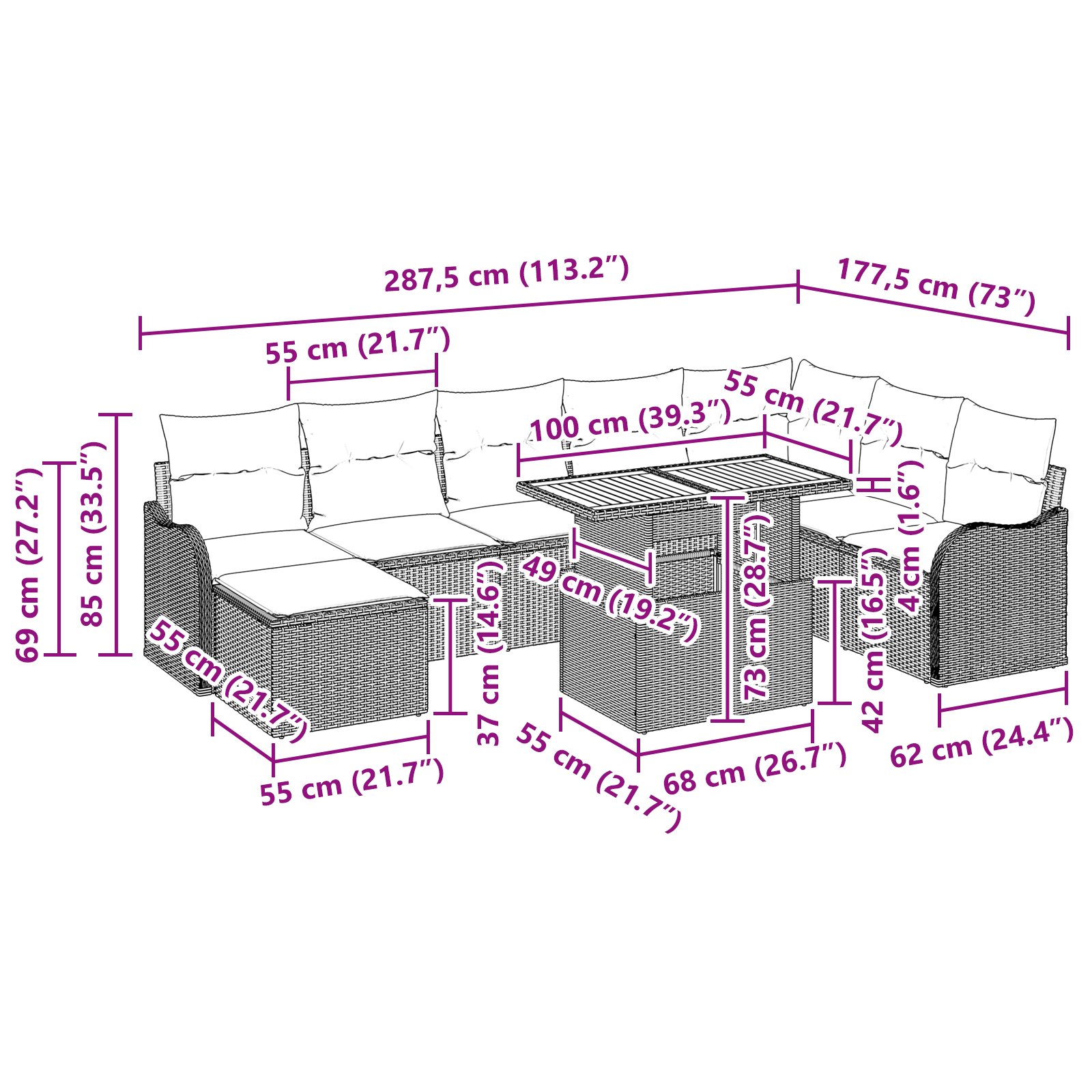 Sada zahradní sedačky je perfektní kombinací stylu a praktickosti. Je ideální na zahradu nebo terasu a opravdu pozvedne vaše venkovní bydlení. Díky svému štíhlému designu se hodí do jakéhokoli venkovního prostoru. Ať už pořádáte letní párty, nebo si jen užíváte klidného čtení, tahle sedačka vám dodá jak pohodlí, tak styl.