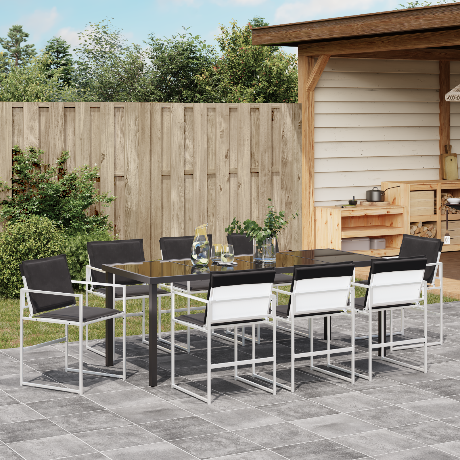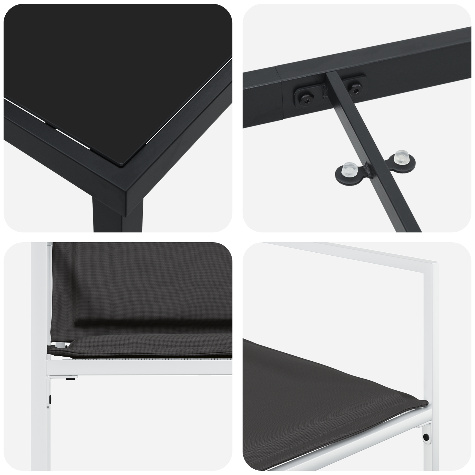 Tato moderne zahradní sada spojuje jednoduchý a praktický styl, takže vaše venkovní prostory budou vypadat skvěle. Navržena pro pohodlné jarní a letní chvíle, má čisté linie a minimální zdobení, které dodá každé zahradě nebo terase šmrnc. Představte si, jak vítáte rodinu a přátele k venkovnímu stolování v tomto krásném prostředí. Černý rám se hladkými texturami zvou hosty, aby se pohodlně usadili a užili si vaši zahradu – je to ideální místo pro jakoukoli akci.