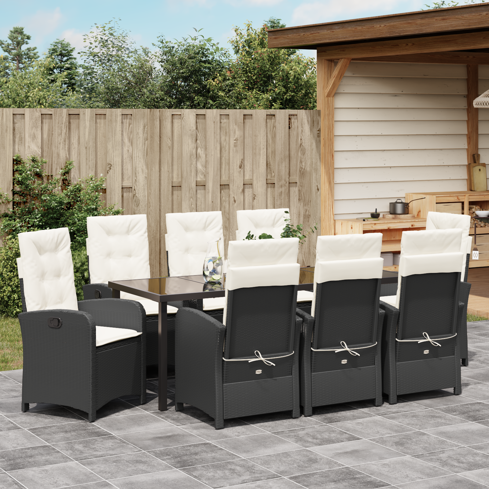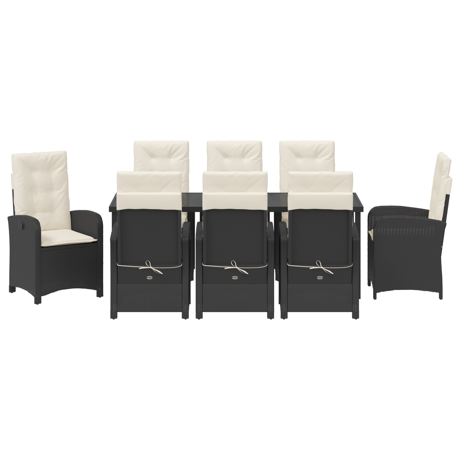 Zahradní jídelní souprava s polštářem 9 pcs Černá polyratan