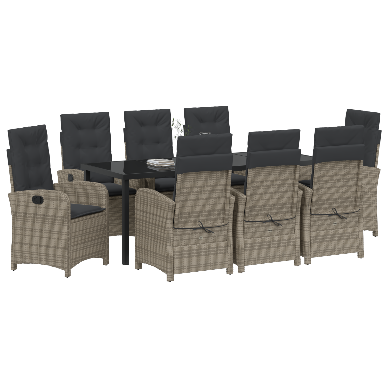 Zahradní jídelní souprava s polštářem 9 pcs Šedá polyratan