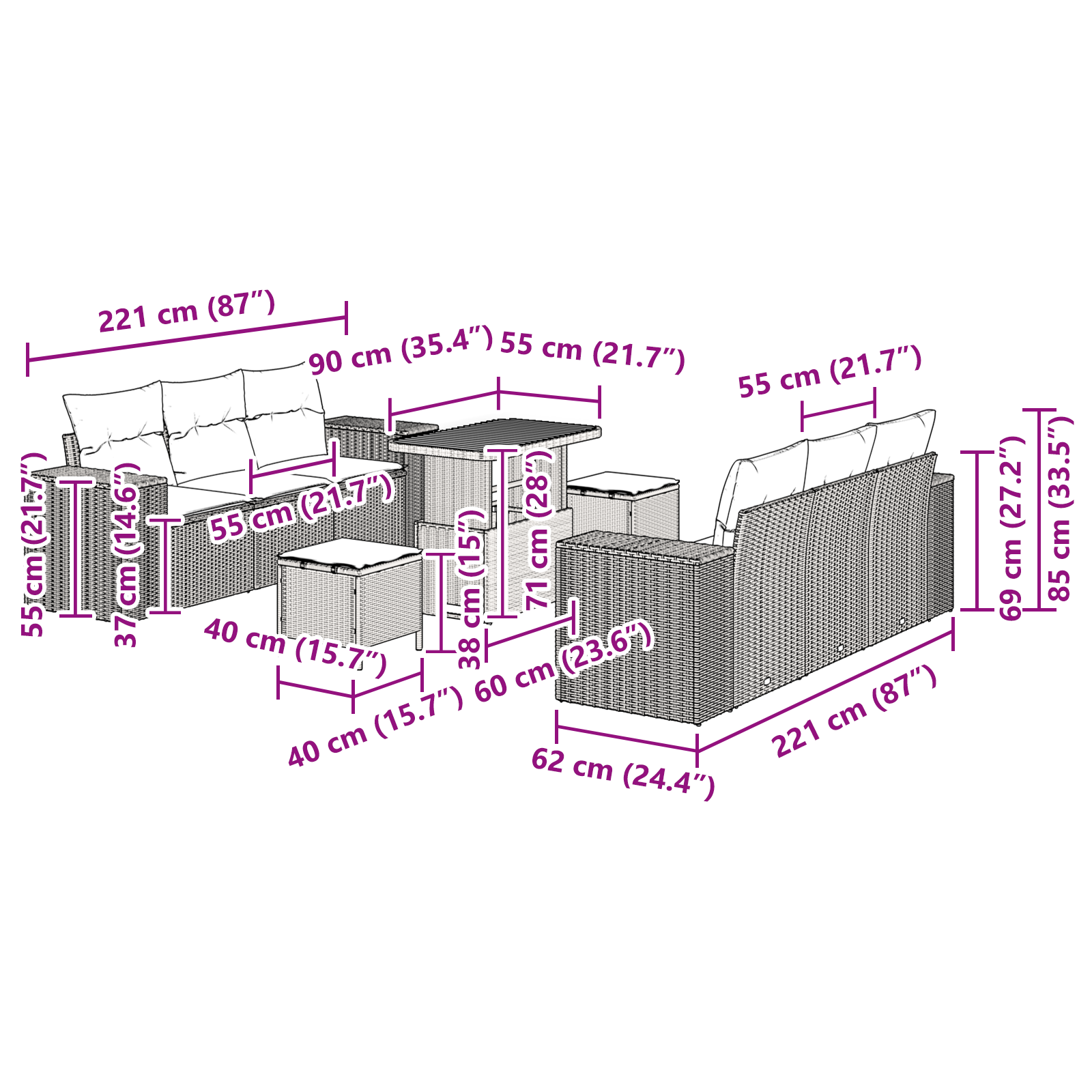 Tahle modulární zahradní sedací souprava je skvělý kus nábytku pro venkovní zahrady a terasy. Má moderní vzhled s čistými liniemi a málo ozdob, což dodává eleganci a zároveň to zaručuje praktičnost a pohodlí. Je to ideální kousek na zahradní párty nebo na lenošení venku. Můžete ji různě uspořádat podle toho, jak potřebujete, což znamená nekonečné možnosti přizpůsobení. Ať už se sluníte na jaře, nebo pořádáte letní brunch, tahle souprava se snadno přizpůsobí vašemu stylu života.