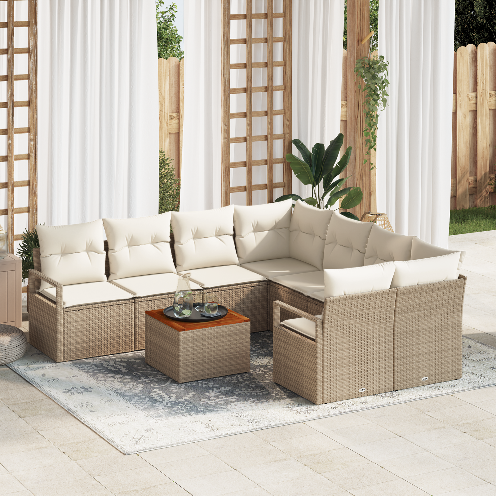 Sada zahradních pohovek s polštářem 9 pcs Béžová polyratan