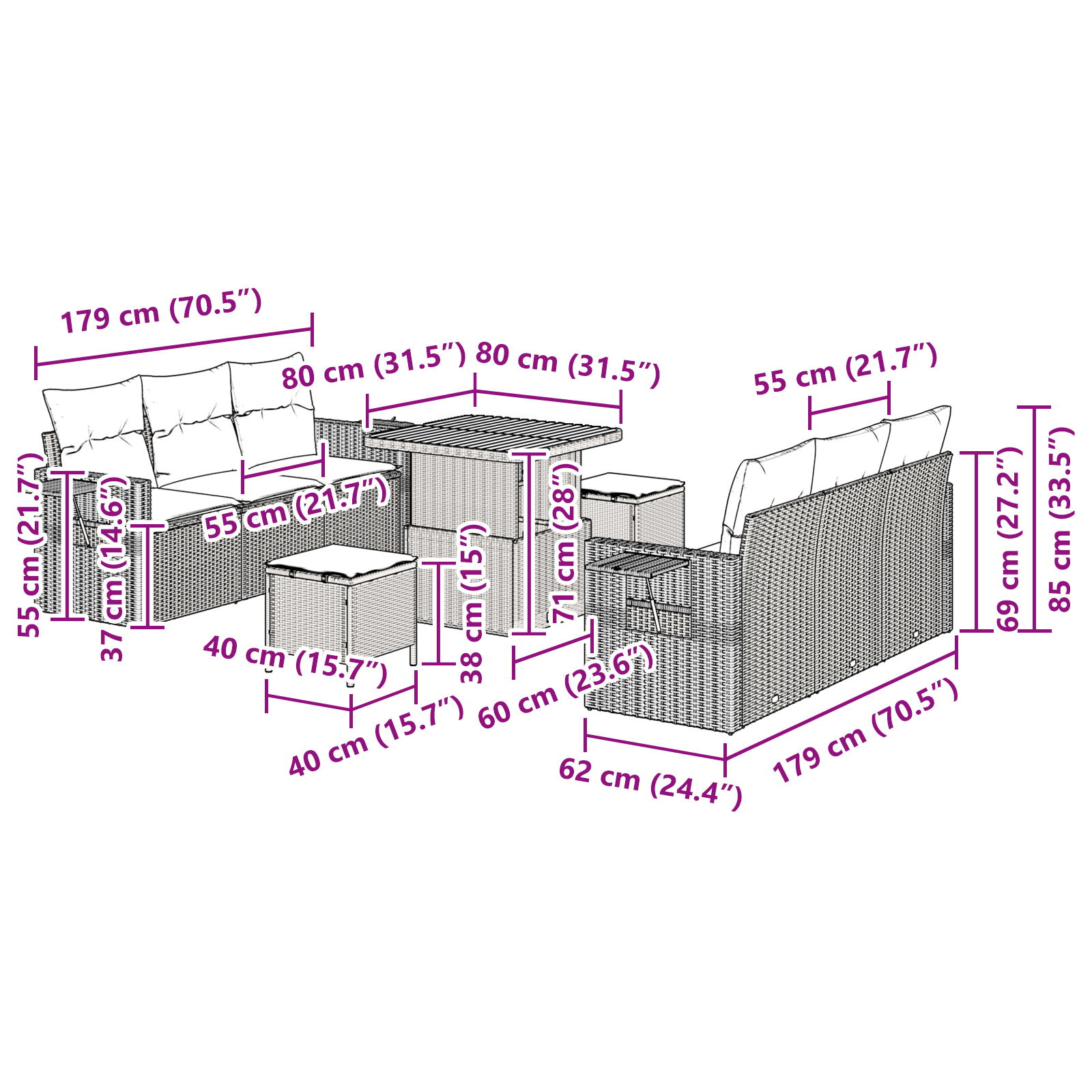 Tento úžasný modulární zahradní pohovkový set promění jakýkoliv venkovní prostor na místo k odpočinku a relaxaci. Moderní design s čistými liniemi a jednoduchostí se hodí do každé zahrady nebo na terasu. Představte si, jak relaxujete na pohodlných polstrech z polyratanu pod sluncem, obklopeni akáciovým dřevem. Set vás vyzývá k sestavení různých uspořádání, ideálních pro malá nebo velká setkání.
