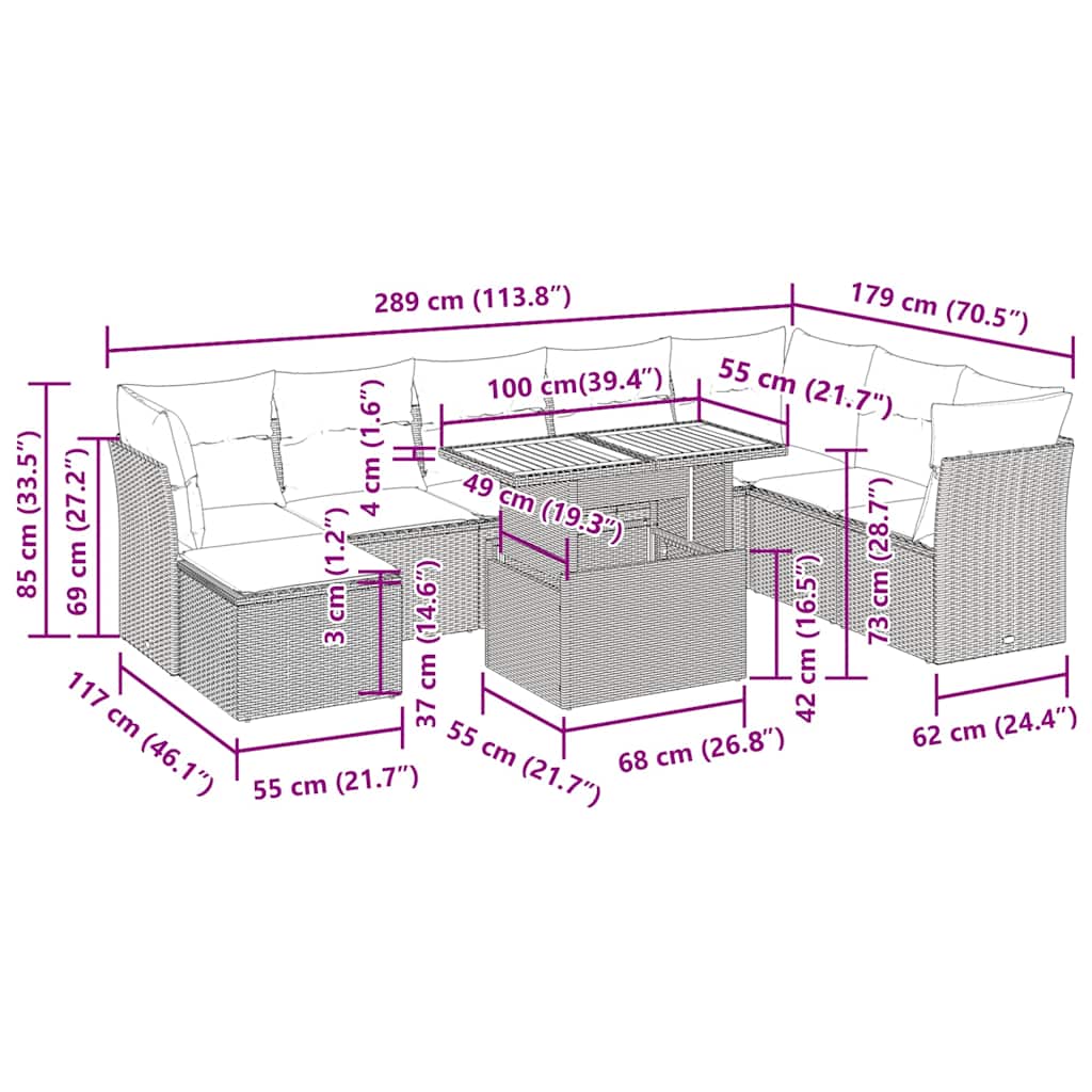 9dílná zahradní sedací souprava s poduškami béžová polyratan
