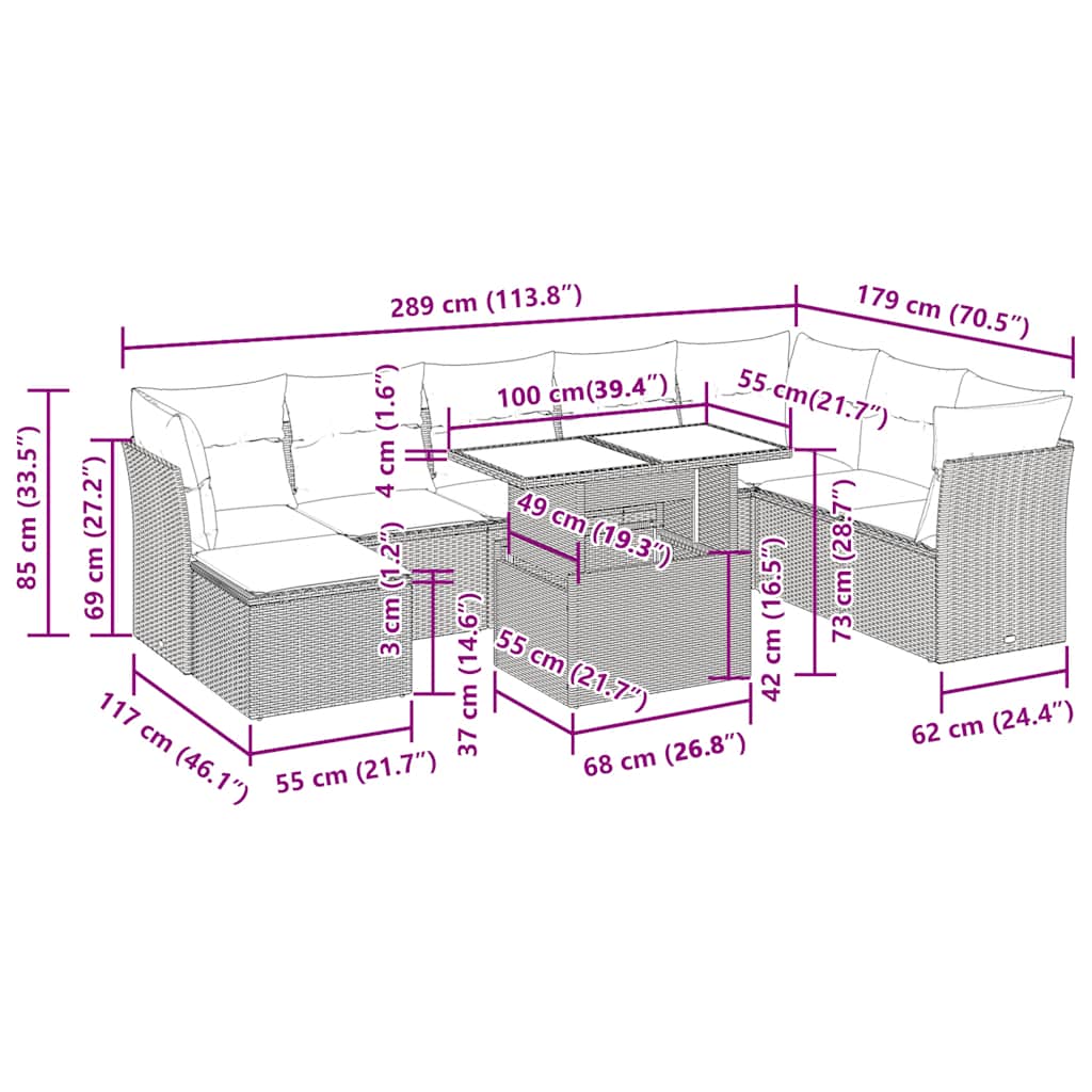 9dílná zahradní sedací souprava s poduškami béžová polyratan