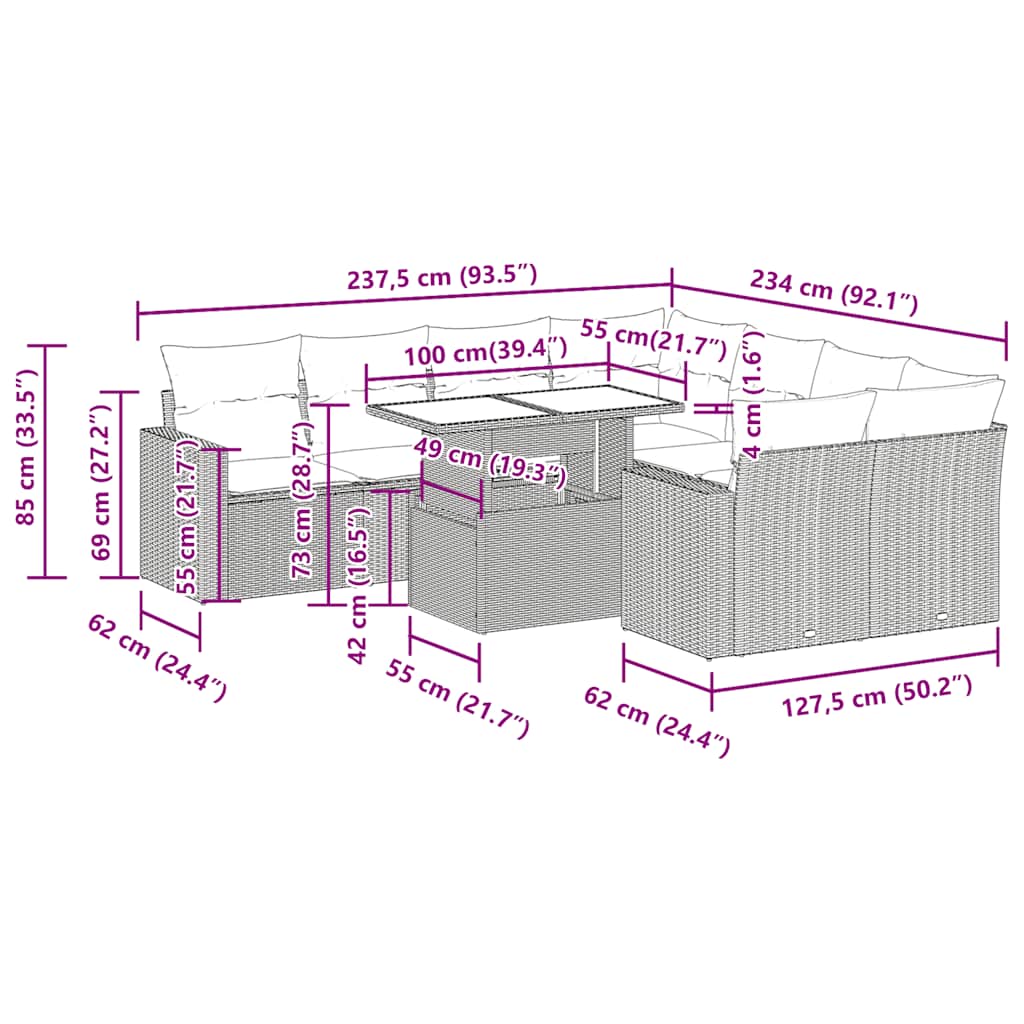 9dílná zahradní sedací souprava s poduškami béžová polyratan