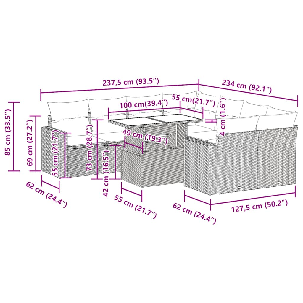 9dílná zahradní sedací souprava s poduškami béžová polyratan