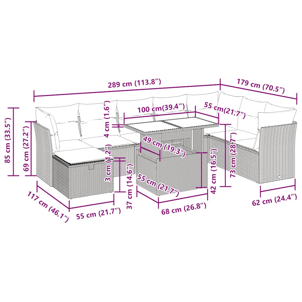 9dílná zahradní sedací souprava s poduškami béžová polyratan
