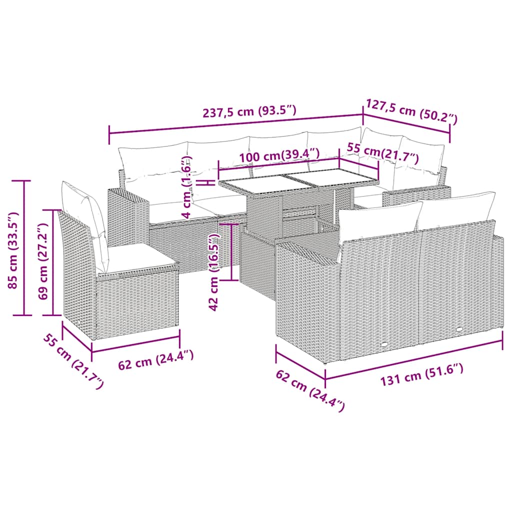 Tato zahradní sedací souprava je dokonalým doplňkem vaší zahrady, terasy nebo dvorku a poskytne vám pohodlné a příjemné místo, kde si můžete povídat s rodinou a přáteli nebo jen tak odpočívat a užívat si pobyt venku.