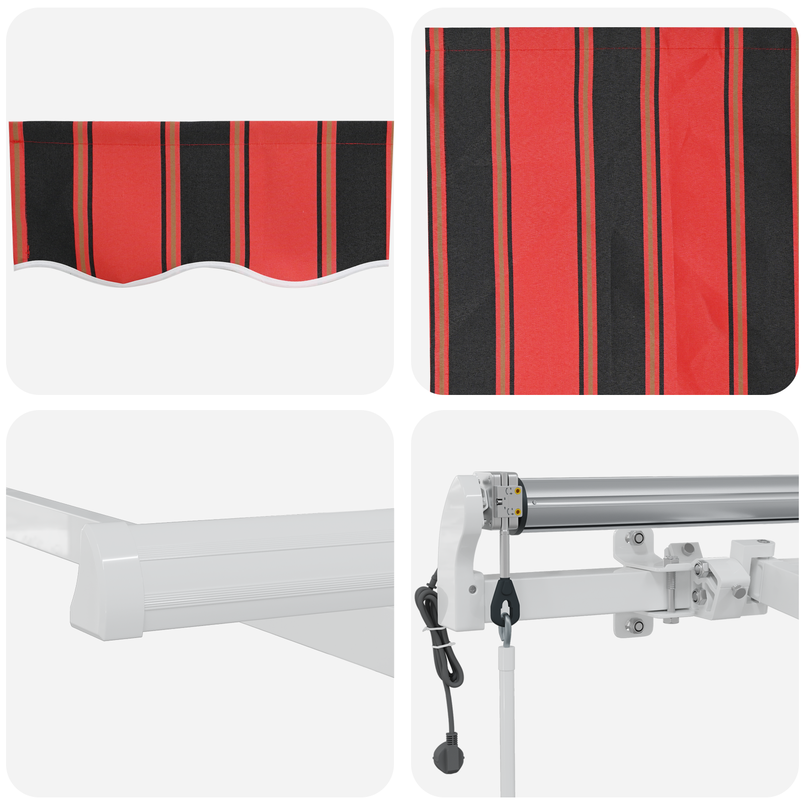 • Kvalitní tkanina: Vyrobena ze 100% polyesterového plátna, markýza je vysoce odolná a vydrží všechny povětrnostní vlivy. Tkanina zaručuje pohodlný stín i za slunečného počasí a svým výkonem je ideální pro časté používání v létě.