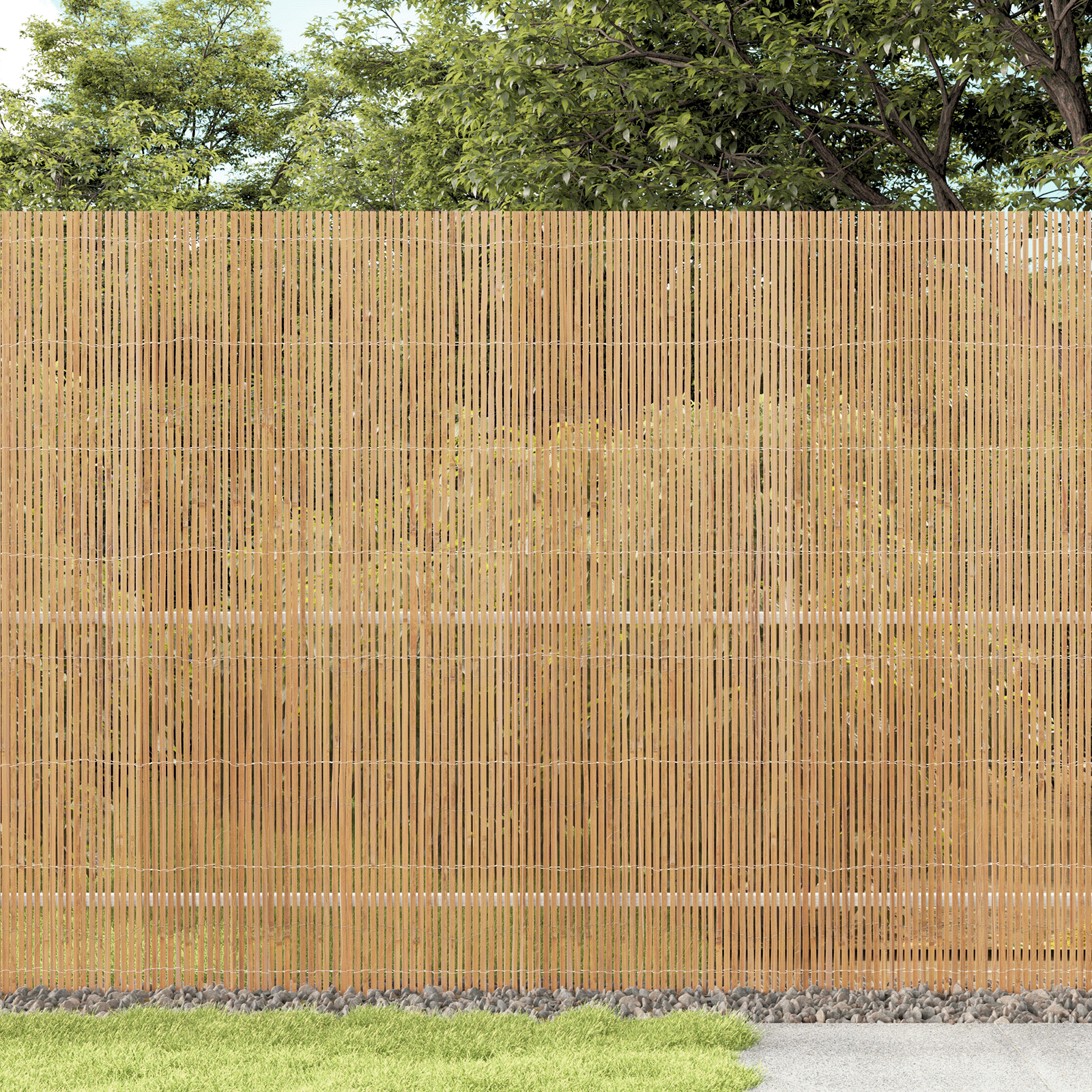 Tento přírodní bambusový plot nabízí rustikální a elegantní způsob, jak vylepšit vaši zahradu nebo terasu. Vyrobený z bambusu, poskytuje nádherný přírodní vzhled, který ladí s jakýmkoliv stylem venkovního prostředí. Je to skvělý způsob, jak vytvořit klidné a uzavřené místo, jenž se skvěle integruje s přírodou a nabízí funkční bariéru bez ztráty stylu.