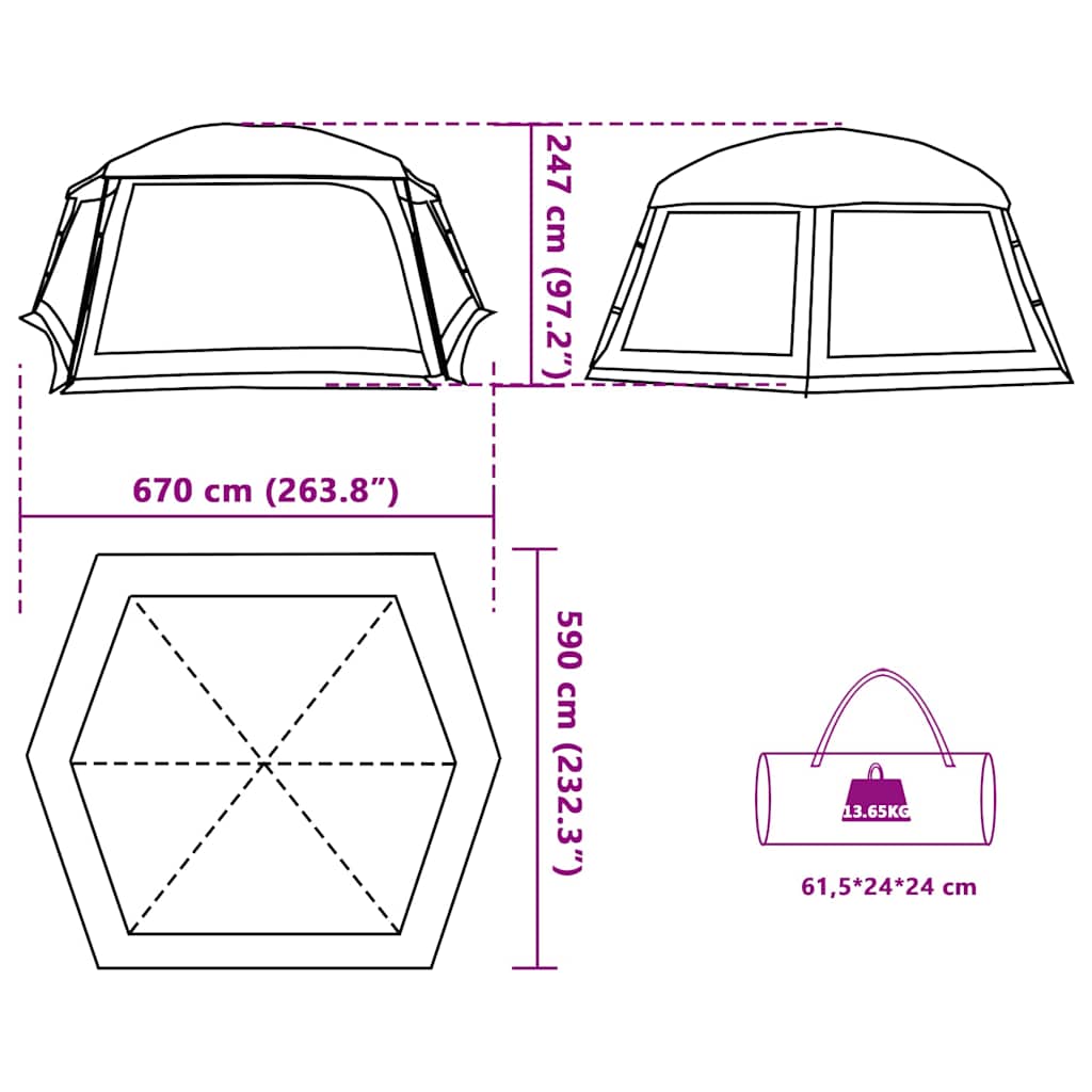 Multifunkční stan: Tento stan poskytuje přístřeší pro bazén a zároveň slouží pro různé potřeby, jako je rodinné kempování, pikniky, večírky, venkovní stolování a další.