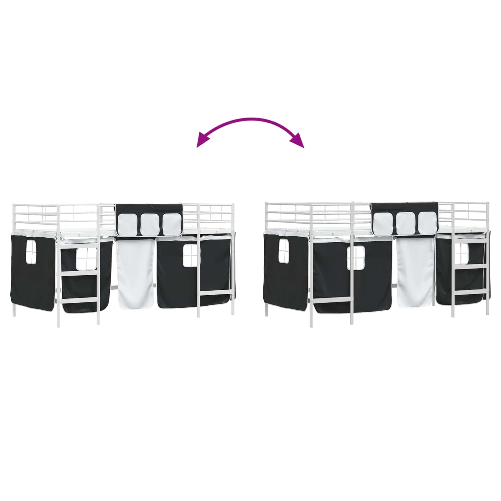 • Soukromí se stylem: Díky prodyšným síťovaným závěsům je snadné je otevřít nebo zavřít. Děti tak získají pocit soukromí nebo volnost v tvoření. Elegantní černé závěsy se hodí do rámu a dolní prostor se tak promění na skrýš pro čtení nebo hraní.