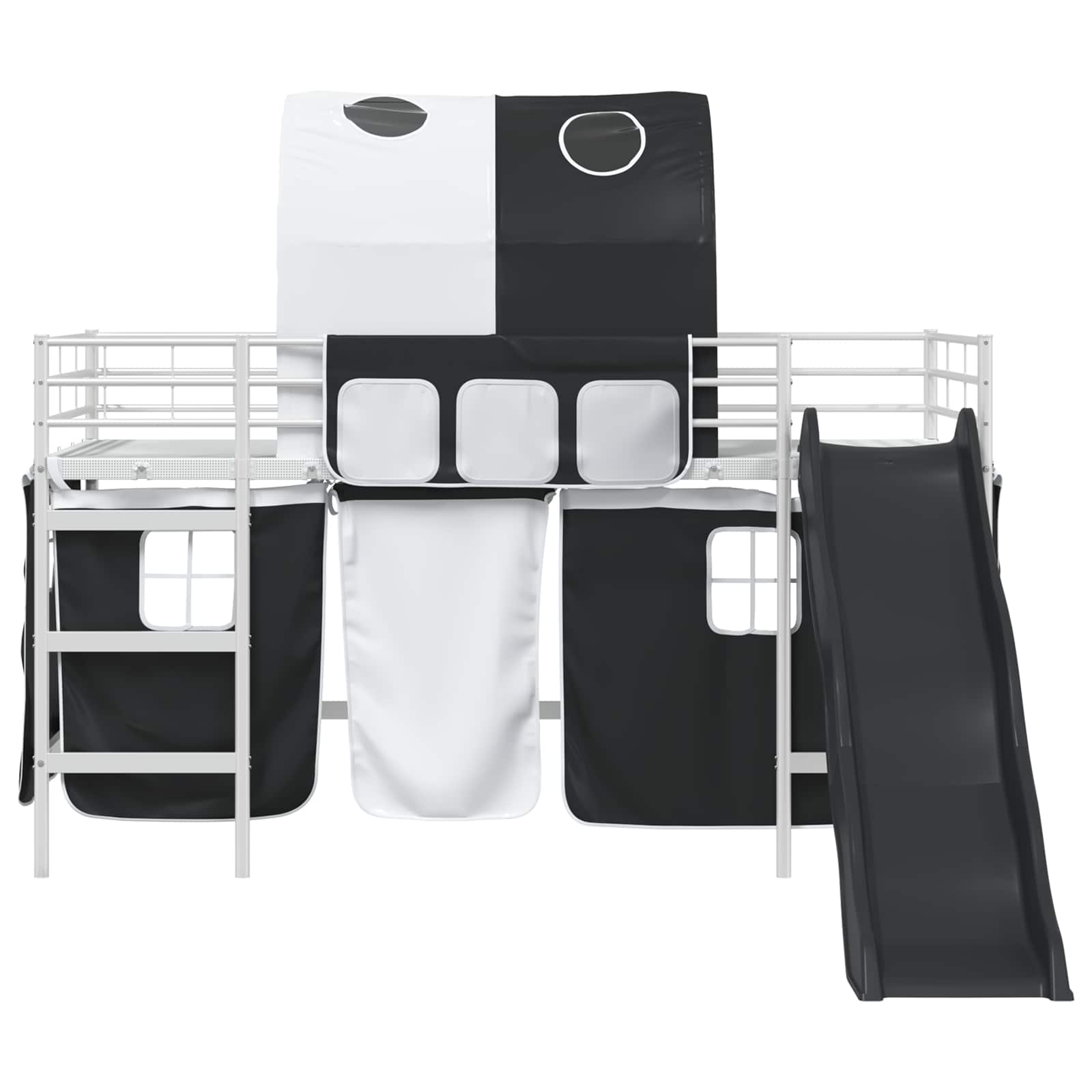 Dětská podkrovní postel se závěsy, obloukem a skluzavkou je navržena tak, aby spojila zábavu s praktičností a vytvořila příjemný spánek, který si děti zamilují. S moderním vzhledem se snadno hodí do jakéhokoliv dětského pokoje. Odolné materiály a hravá skluzavka nabízejí skvělé prostředí pro odpočinek a fantazii. Její kombinace černé a modré barvy dodává moderní říz každému pokoji, takže je super a vzrušující součástí vaší domácnosti.