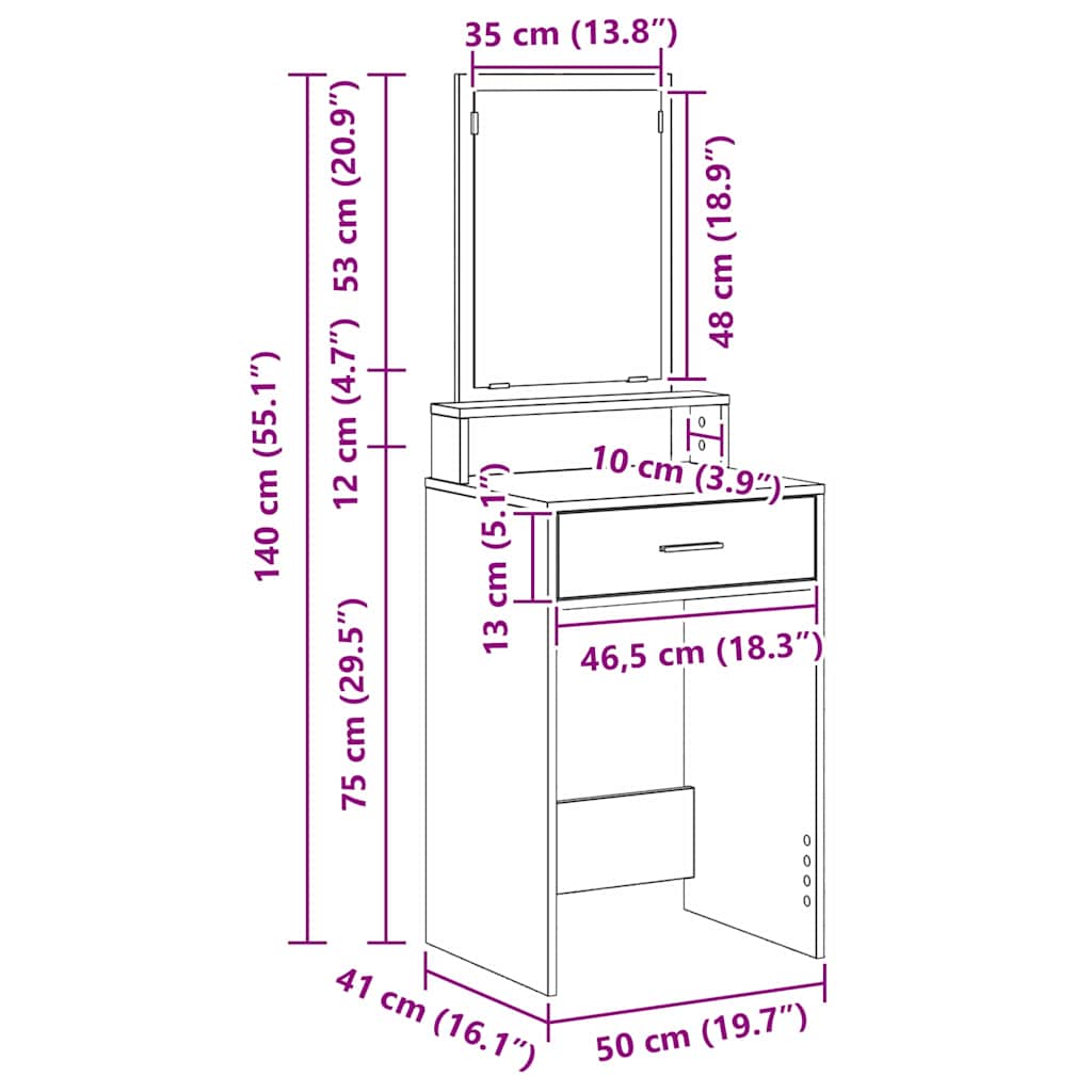 • Konstrukce z kompozitního dřeva Tento toaletní stolek je ze silného kompozitního dřeva, takže je stabilní a odolný. Materiál je známý svojí tvrdostí, takže je ideální na každodenní užívání. Matný povrch jeho designu dodává štíhlý vzhled a vyžaduje minimum údržby.