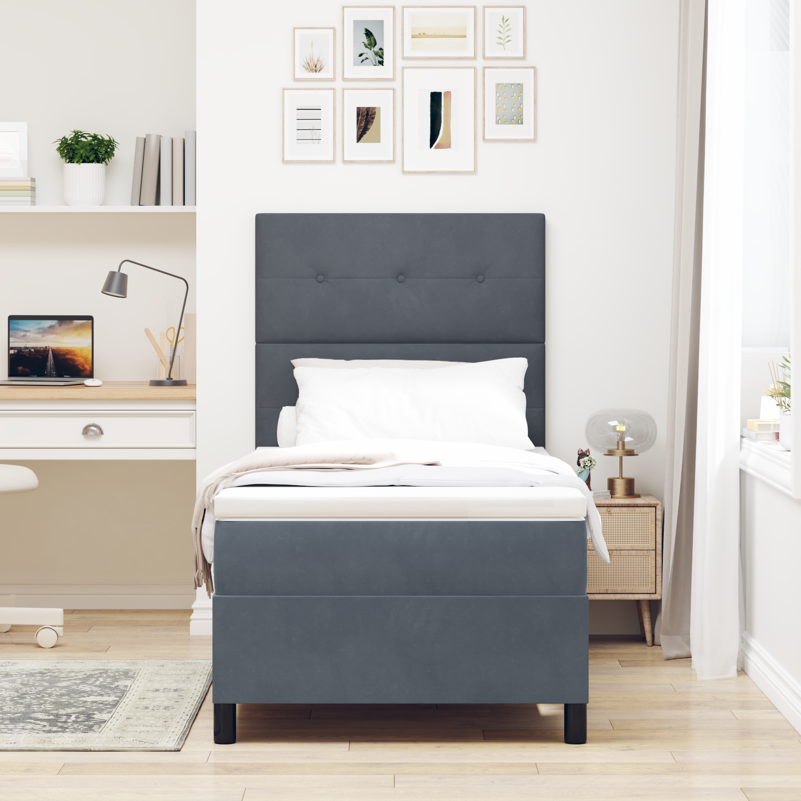 Tato LED Box Spring postel je kombinace moderního designu a funkčnosti, perfektně se hodí do každé moderní ložnice. Elegantní minimalistický vzhled v kombinaci s pohodlnou konstrukcí z ní dělá skutečně skvělou volbu pro ty, co chtějí zlepšit svůj spací prostor. LED čelo přináší vizuální zajímavost a vytváří příjemné osvětlení, ideální na večerní čtení nebo pro uvolnění po dlouhém dni.