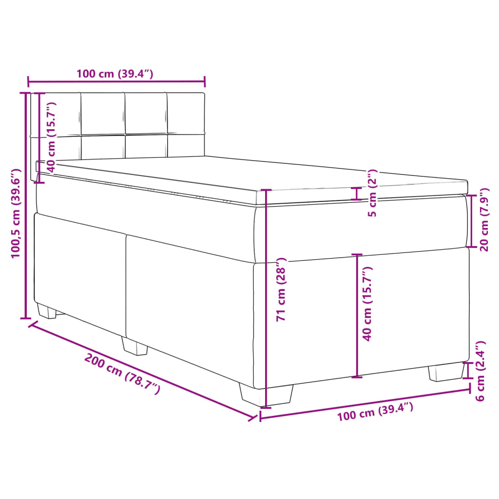 Box spring postel s matrací světle šedá 100x200 cm samet