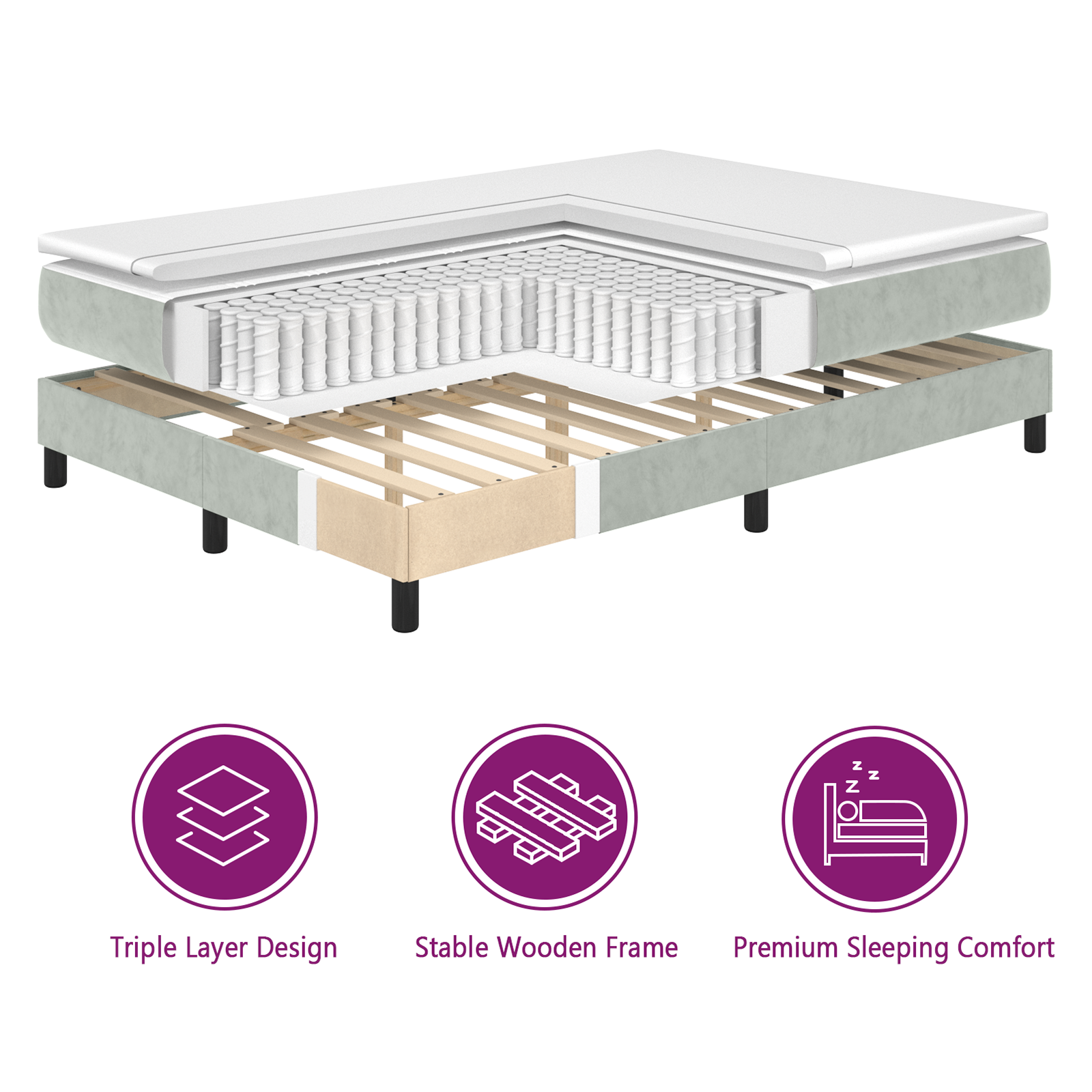 Tato hezká postel s pružinami spojuje moderní styl s pohodlím, má kvalitní měkký sametový povrch, který tě navíc uvolní. Je navržena pro dnešního minimalistu a její elegantní profil se hodí do jakékoli trendy ložnice. Nastavitelná hlavová deska ti přidá šikovný prvek, který si můžeš nastavit podle svých potřeb. Tlumená tmavě šedá barva skvěle zapadne do různých dekorací a vytvoří příjemnou atmosféru, takže tvá ložnice se změní na klidné útočiště.