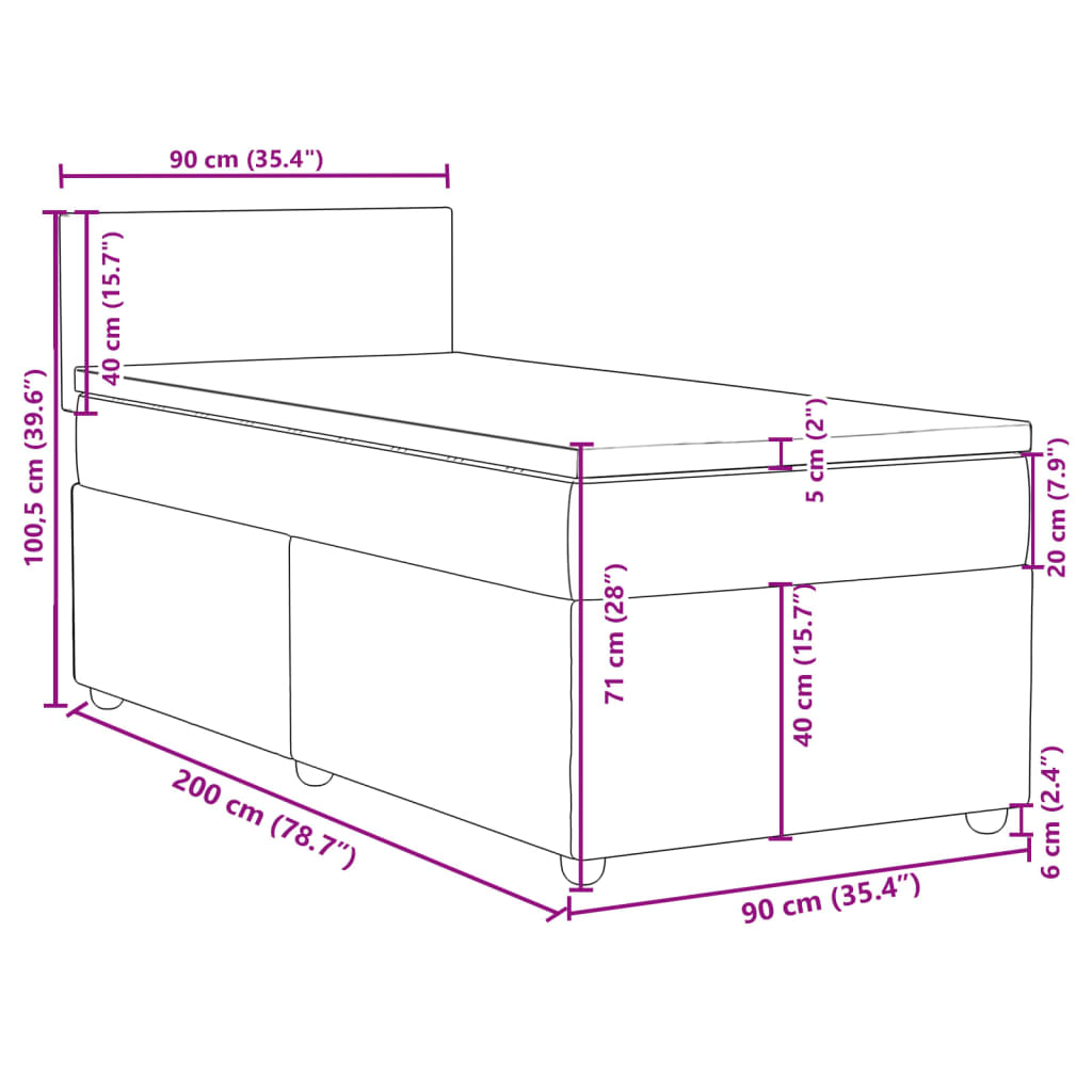 Box spring postel s matrací světle šedá 90x200 cm textil