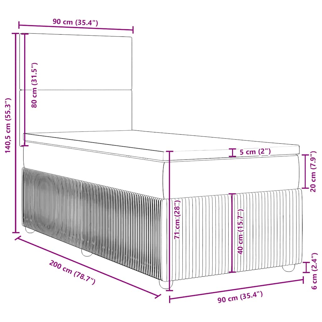 Box spring postel s matrací světle šedá 90x200 cm textil