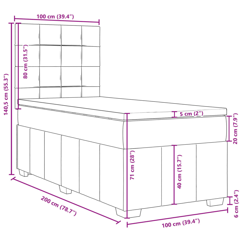 Box spring postel s matrací tmavě šedá 100 x 200 cm textil