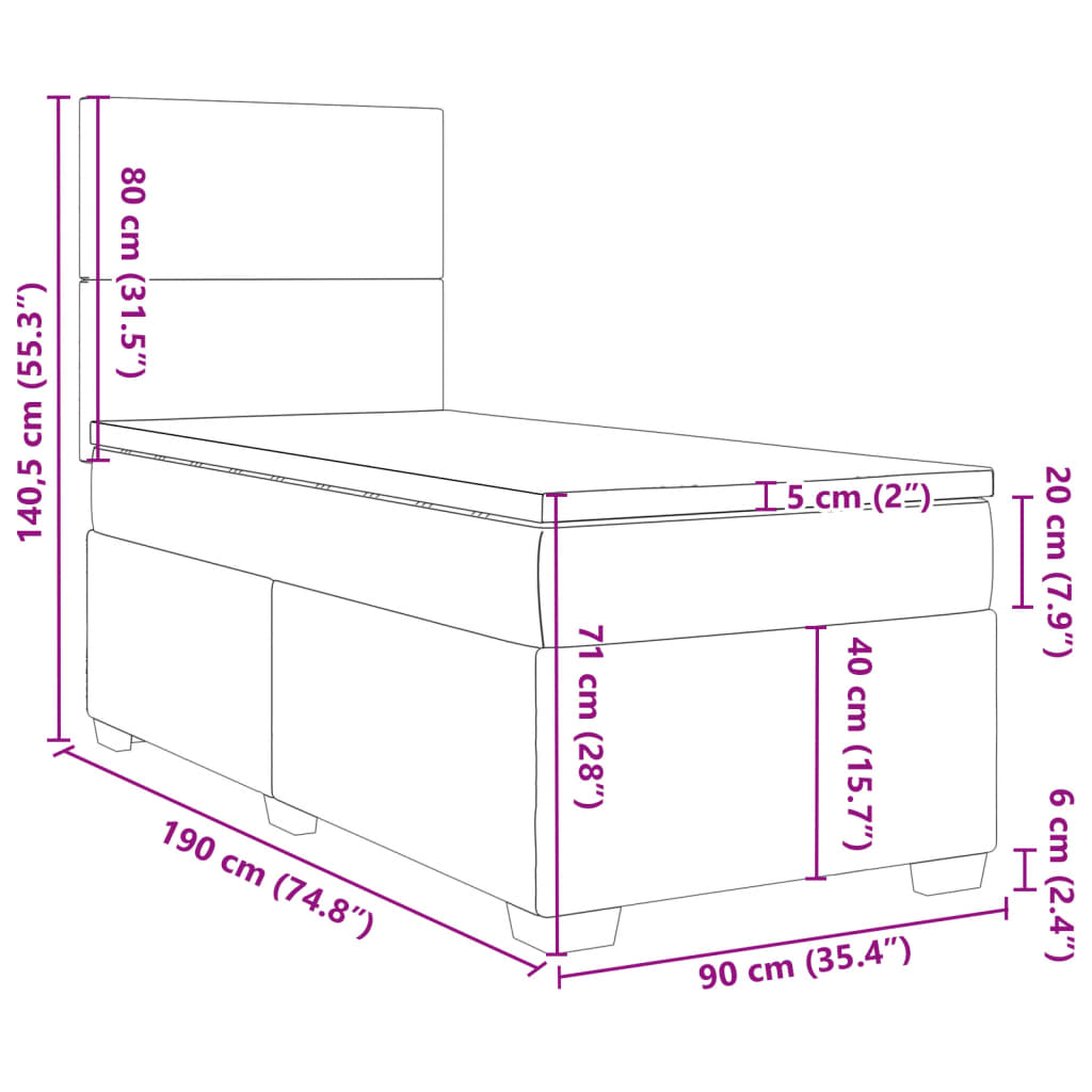 Box spring postel s matrací tmavě šedá 90x190 cm textil