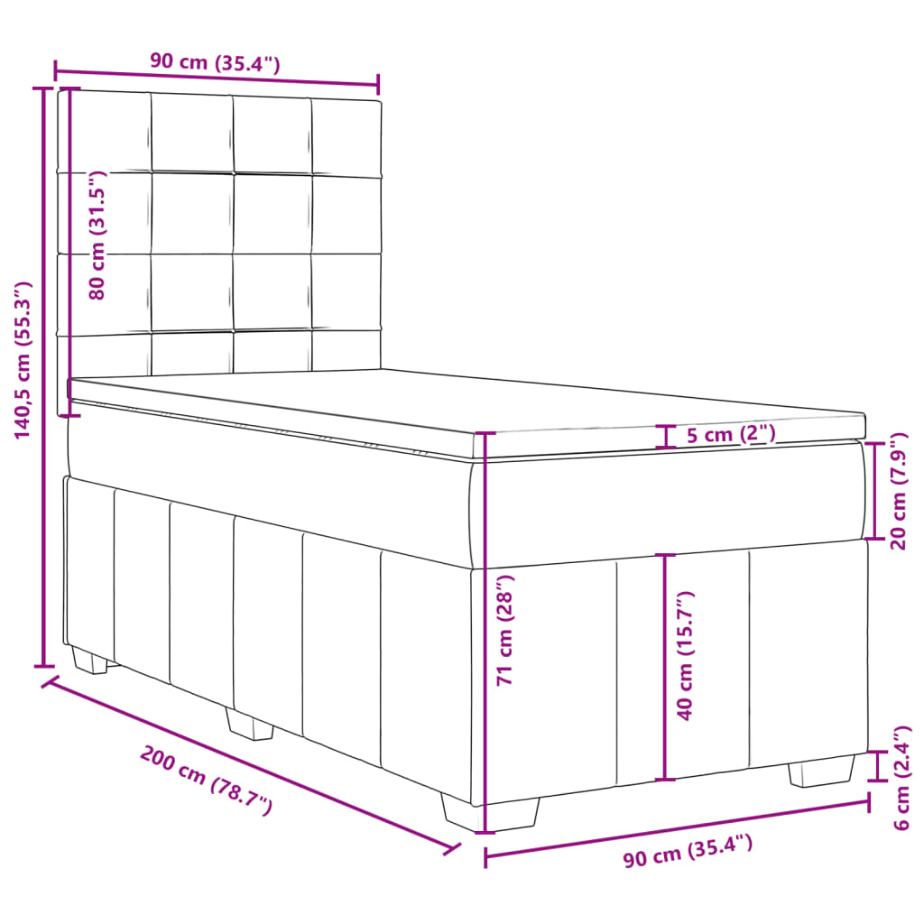 Box spring postel s matrací tmavě šedá 90x200 cm textil