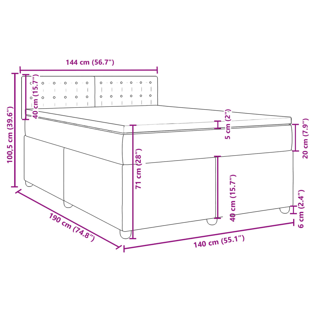 Box spring postel s matrací tmavě šedý 140 x 190 cm textil